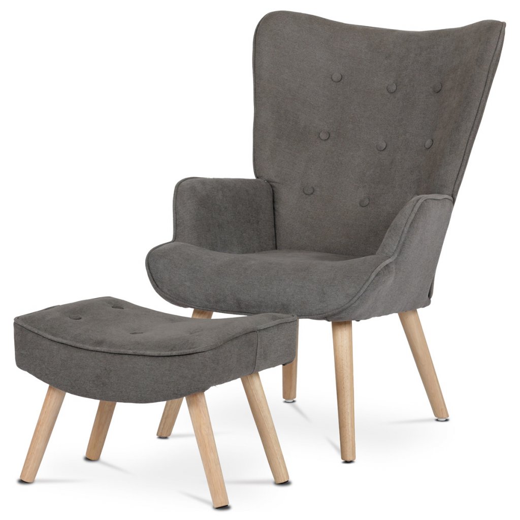 Křeslo "ušák" s podnožkou, potah šedá látka, dřevěné nohy, masiv kaučukovník AKR119S. Křeslo minimalistických linií ve skandinávském stylu. Vyniká vysokým prohnutým opěrákem,...