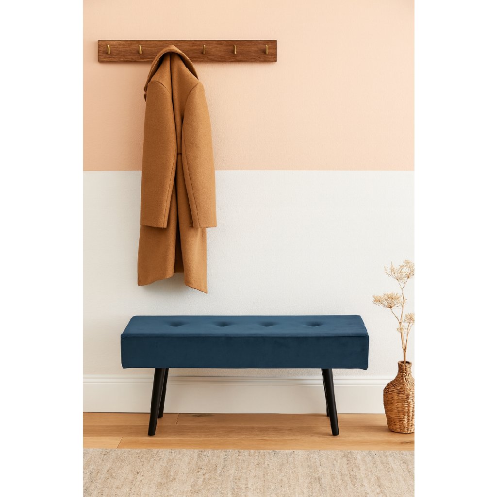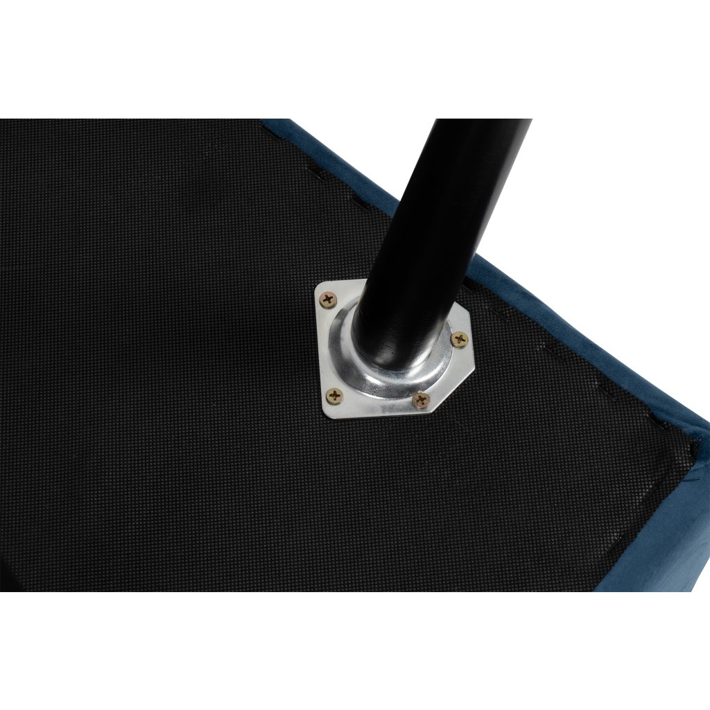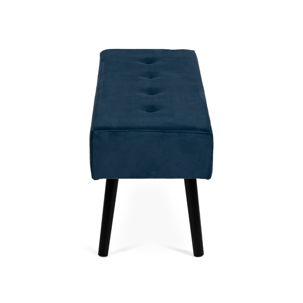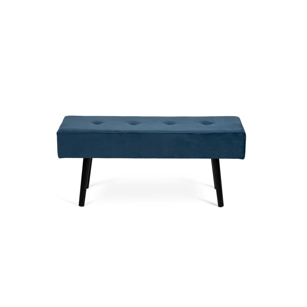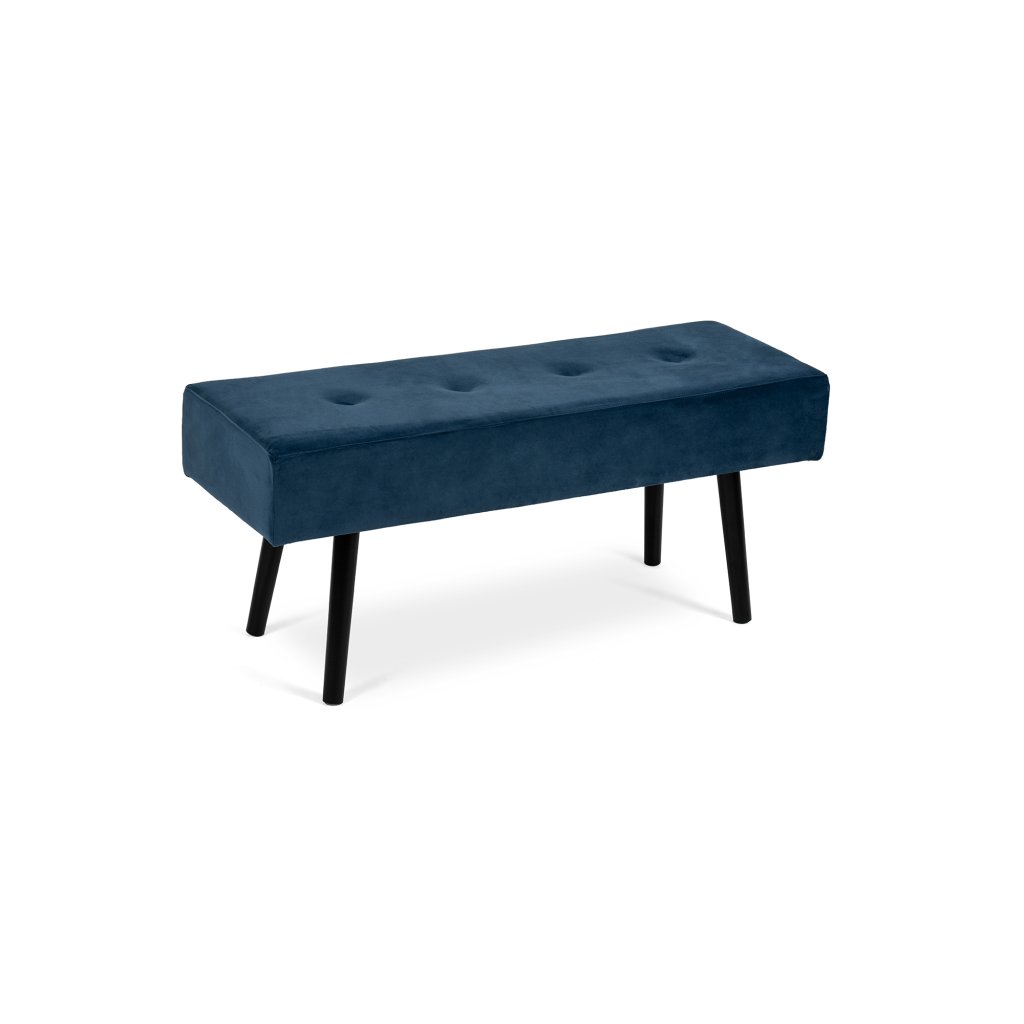 MDF, molitan s modrým sametovým potahem, nohy z borovicového dřeva v černé barvě, 100X35x43 cm.