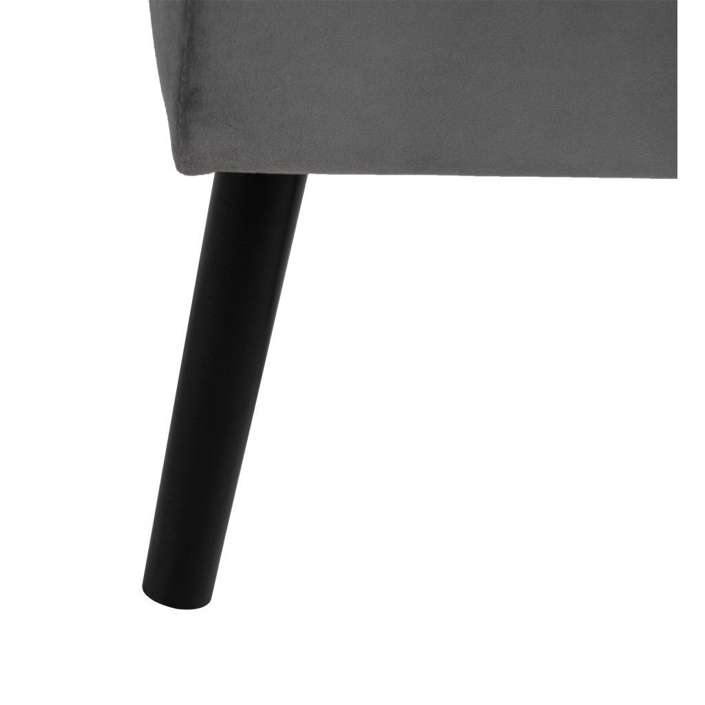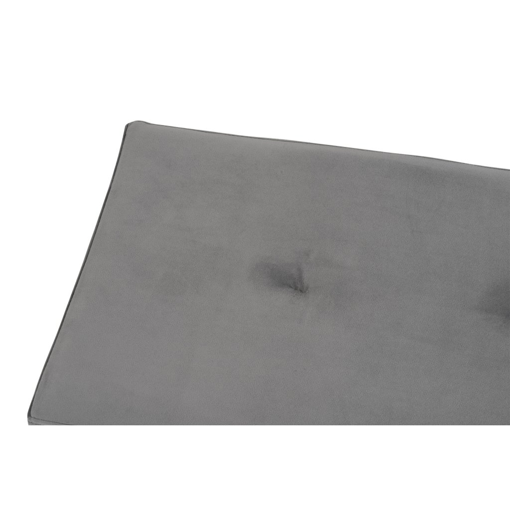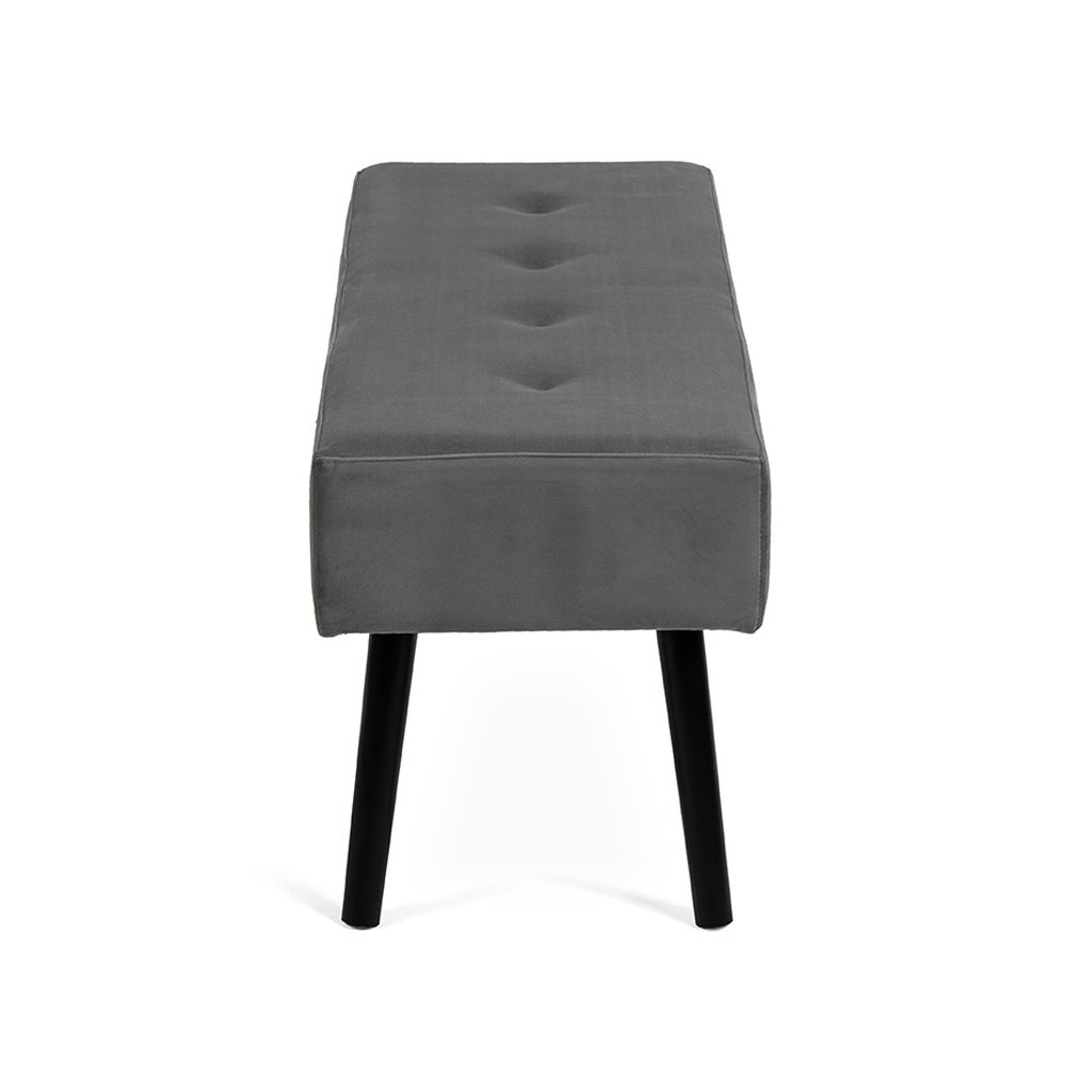 MDF, molitan s šedým sametovým potahem, nohy z borovicového dřeva v černé barvě, 100X35x43 cm.
