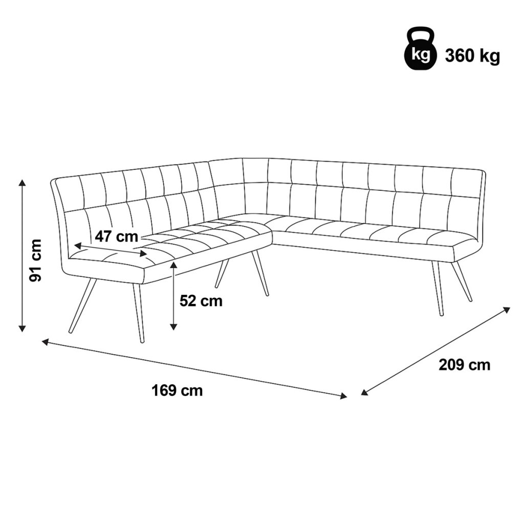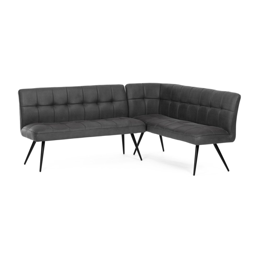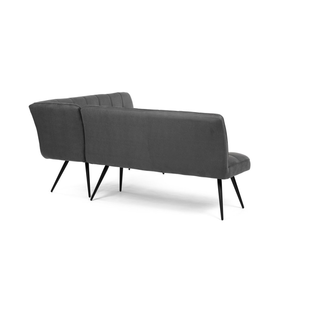 Stylová rohová jídelní lavice nabízí ideální kombinaci pohodlí a moderního designu. Čalounění z odolné látky s jemným povrchem je doplněno o černé kovové nohy, které dodávají lavici stabilitu a elegantní vzhled. Měkké polstrování z PU pěny zajišťuje komfort při sezení, a to i během delších jídel. Díky svému minimalistickému provedení se snadno začlení do jakékoliv jídelny. Tato lavice je skvělou volbou pro ty, kdo hledají funkční a stylový nábytek.