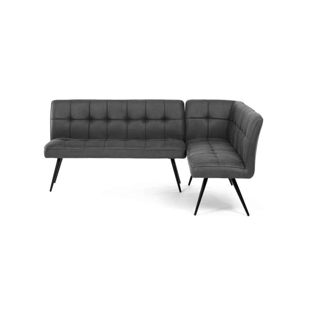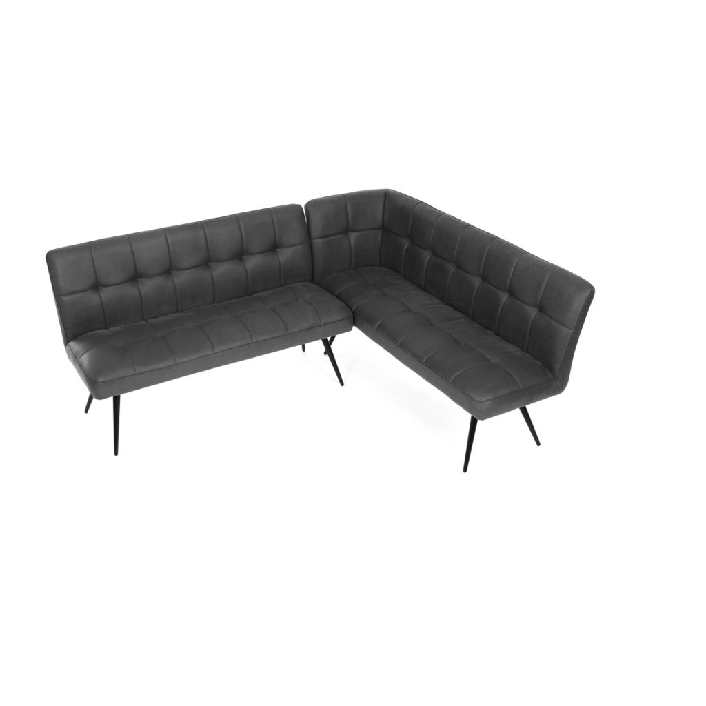 Lavice rohová, šedá látka v dekoru broušené kůže, černý kov AJZ220S. Stylová rohová jídelní lavice nabízí ideální kombinaci pohodlí a moderního designu. Čalounění z odolné látky s jemným povrchem je dopl...