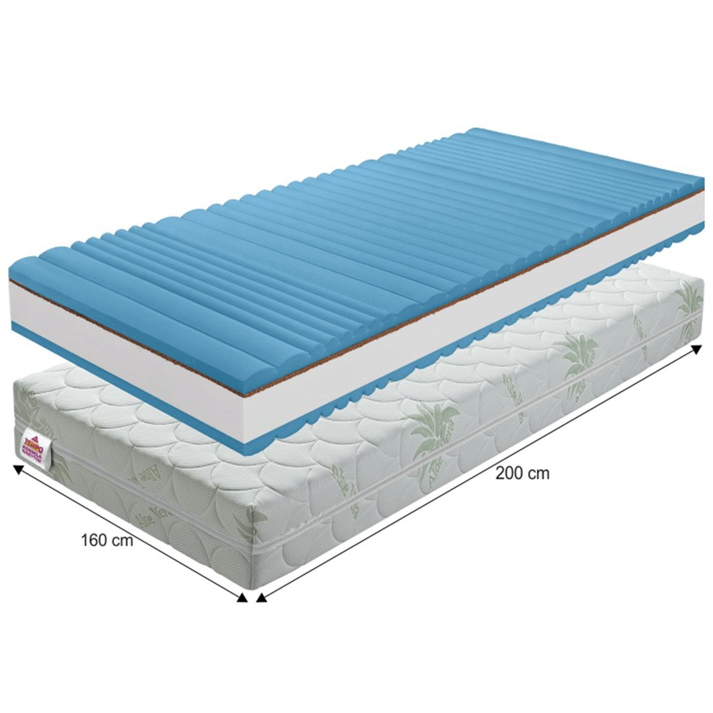 Matrace barva bílá 160x200 cm pěnová sedmi zónová PUR pěna kokosové vlákno nosnost 130 kg snímatelný potah pro alergiky.