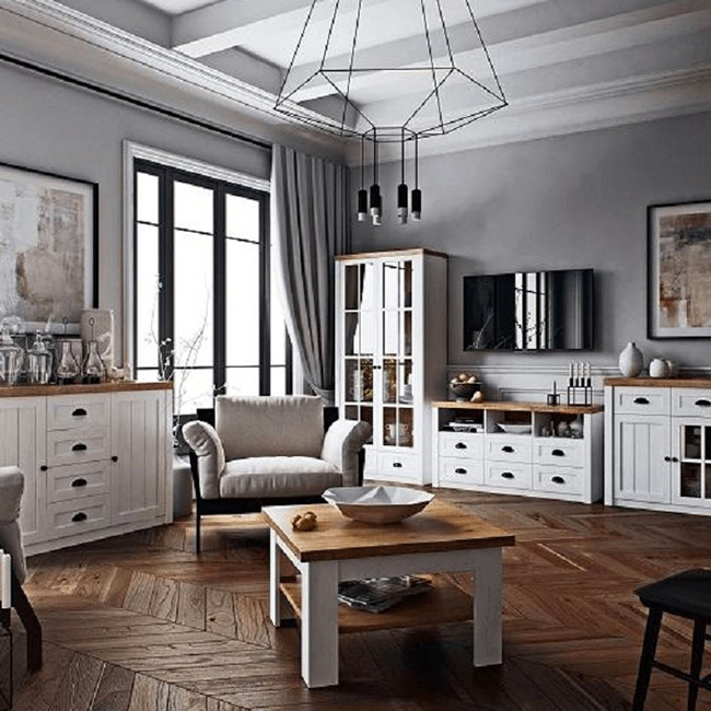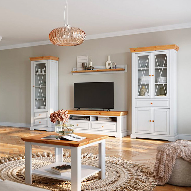 Charakteristickým rysem nábytku Provence jsou světlé barvy, přírodní materiály a jemně zdobené detaily. Dominují bílá, smetanová nebo jemně šedá, které místnosti opticky zvětšují a dodávají jim lehkost. Nábytek v tomto stylu často zdobí patina, reliéfy a kovové úchytky, které dodávají na autenticitě. Do ložnice doporučujeme ladit šatní skříně a noční stolky v bílém či krémovém provedení, zatímco do obývacího pokoje krásně zapadne konferenční stolek. Provence styl si rozumí i s přírodními textiliemi a květinovými doplňky. Nábytek Provence spojuje jemnost, detailní zpracování a přírodní kouzlo.