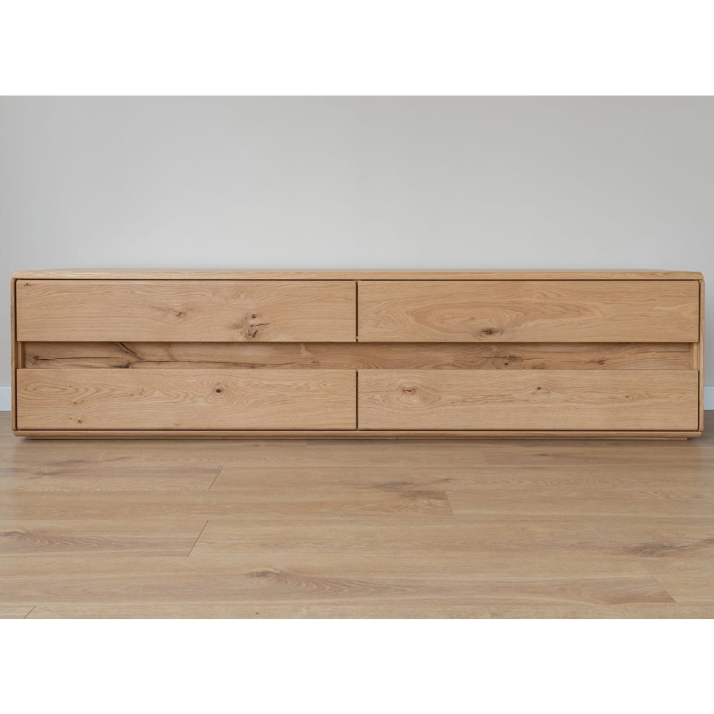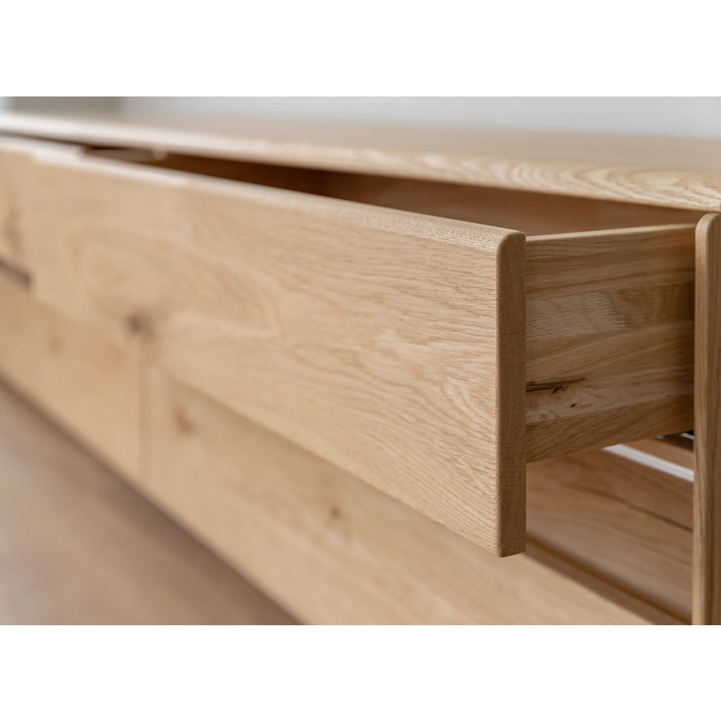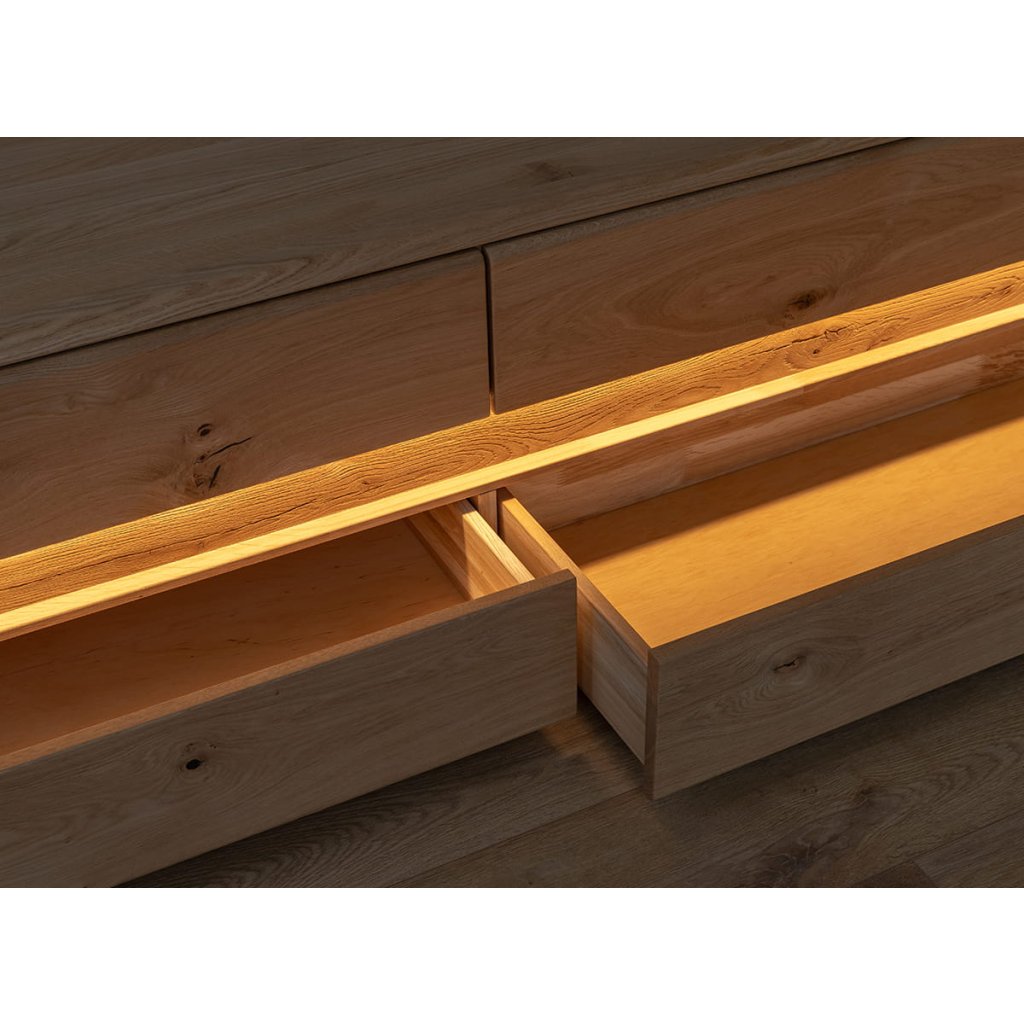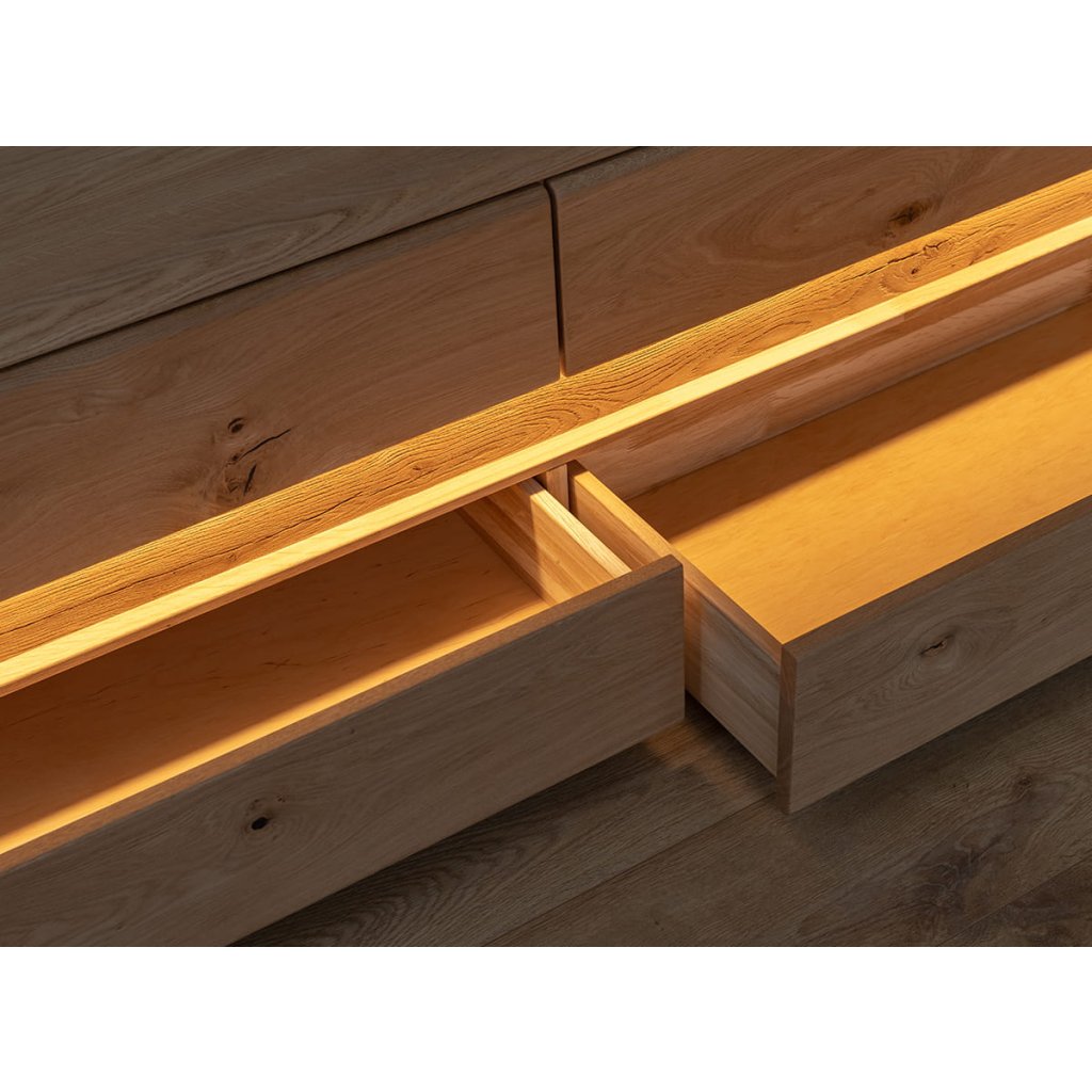 Vysoký nábytek často zabírá mnoho místa a je obtížnější na něj umístit RTV zařízení, proto je nízká dubová TV skříňka Divisione dobrou volbou. Na hlubokou a dlouhou desku můžete umístit poměrně hodně zařízení a do čtyř širokých zásuvek vměstnáte spoustu příslušenství. I když to nejsou všechny jeho výhody.