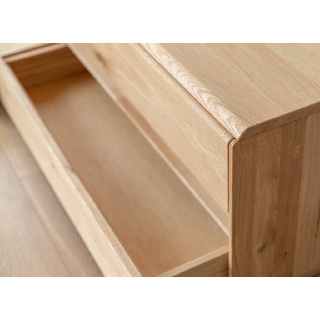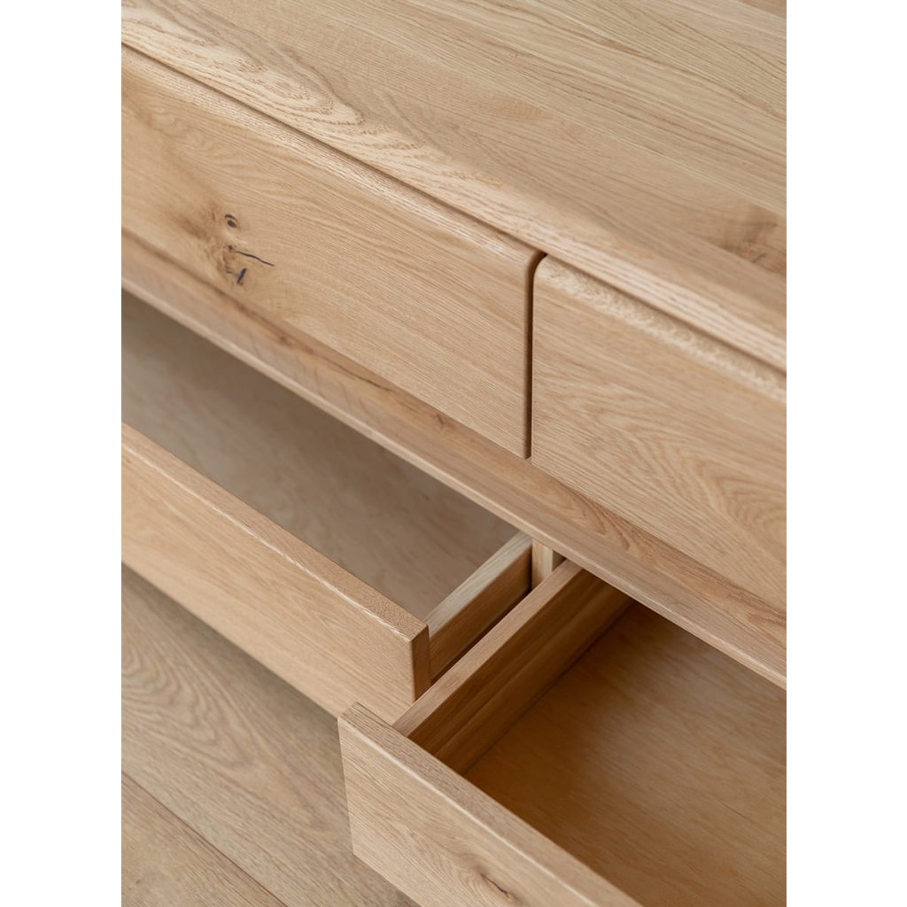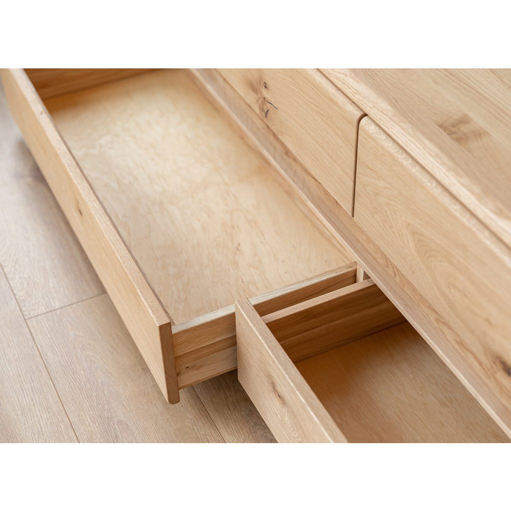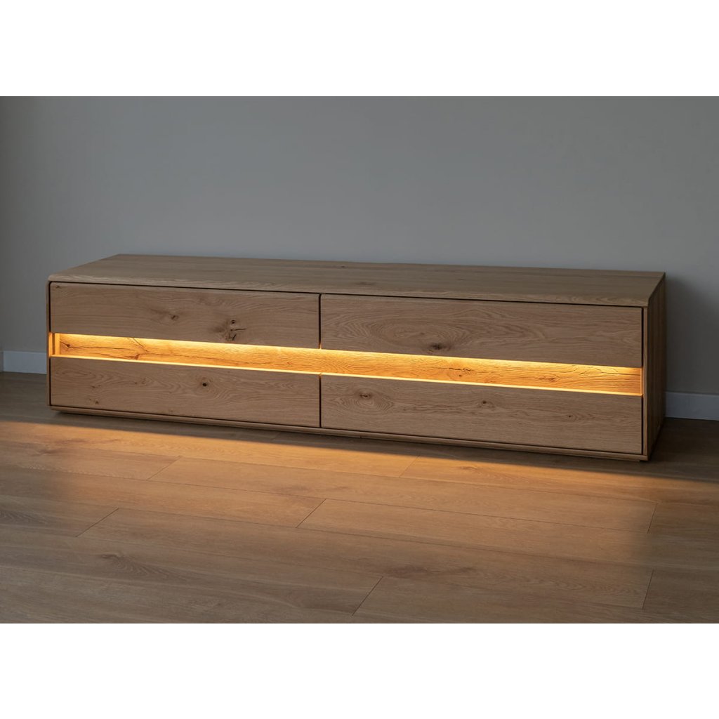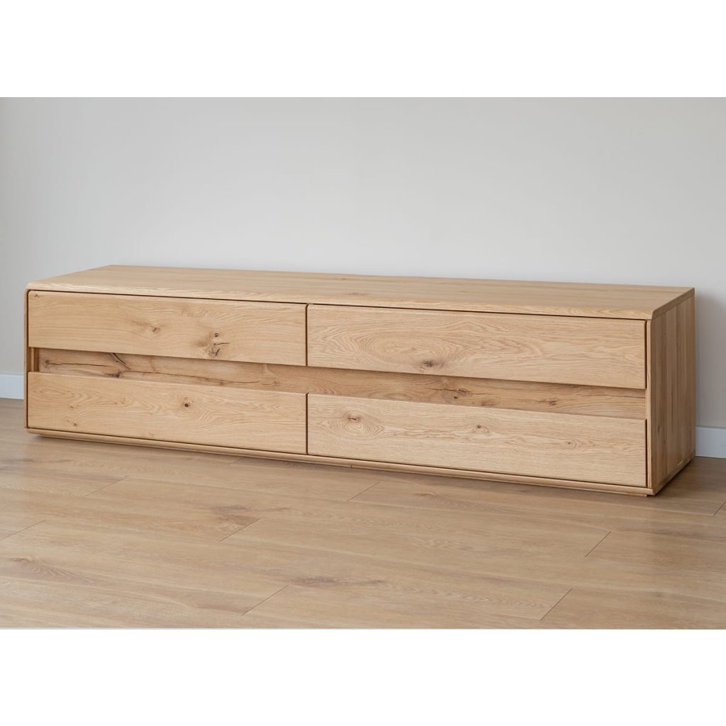 Vysoký nábytek často zabírá mnoho místa a je obtížnější na něj umístit RTV zařízení, proto je nízká dubová TV skříňka Divisione dobrou volbou. Na hlubokou a dlouhou desku můžete umístit poměrně hodně zařízení a do čtyř širokých zásuvek vměstnáte spoustu příslušenství. I když to nejsou všechny jeho výhody.
