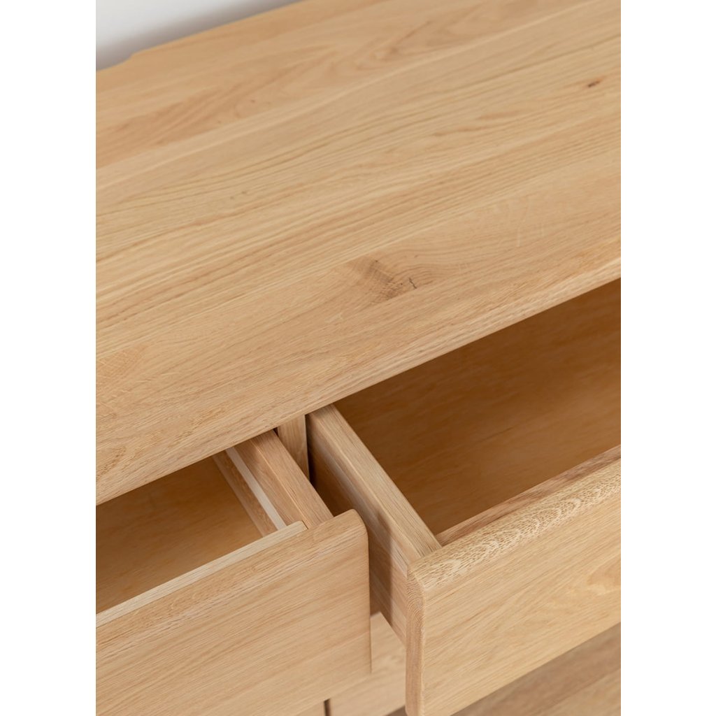 Televizní skříňky nenabízejí vždy spoustu úložného prostoru, zvláště pokud chcete mít po ruce nejrůznější kabely, zdroje a nabíječky. V dřevěné komodě RTV Divisione je mezitím všechny schováte do čtyř prostorných zásuvek, ke kterým máte snadný přístup. To vše díky mírně zapuštěnému prvku, umístěnému mezi spodní a horní řadou zásuvek. Díky němu můžete čela snadno uchopit a otevřít nebo zavřít.