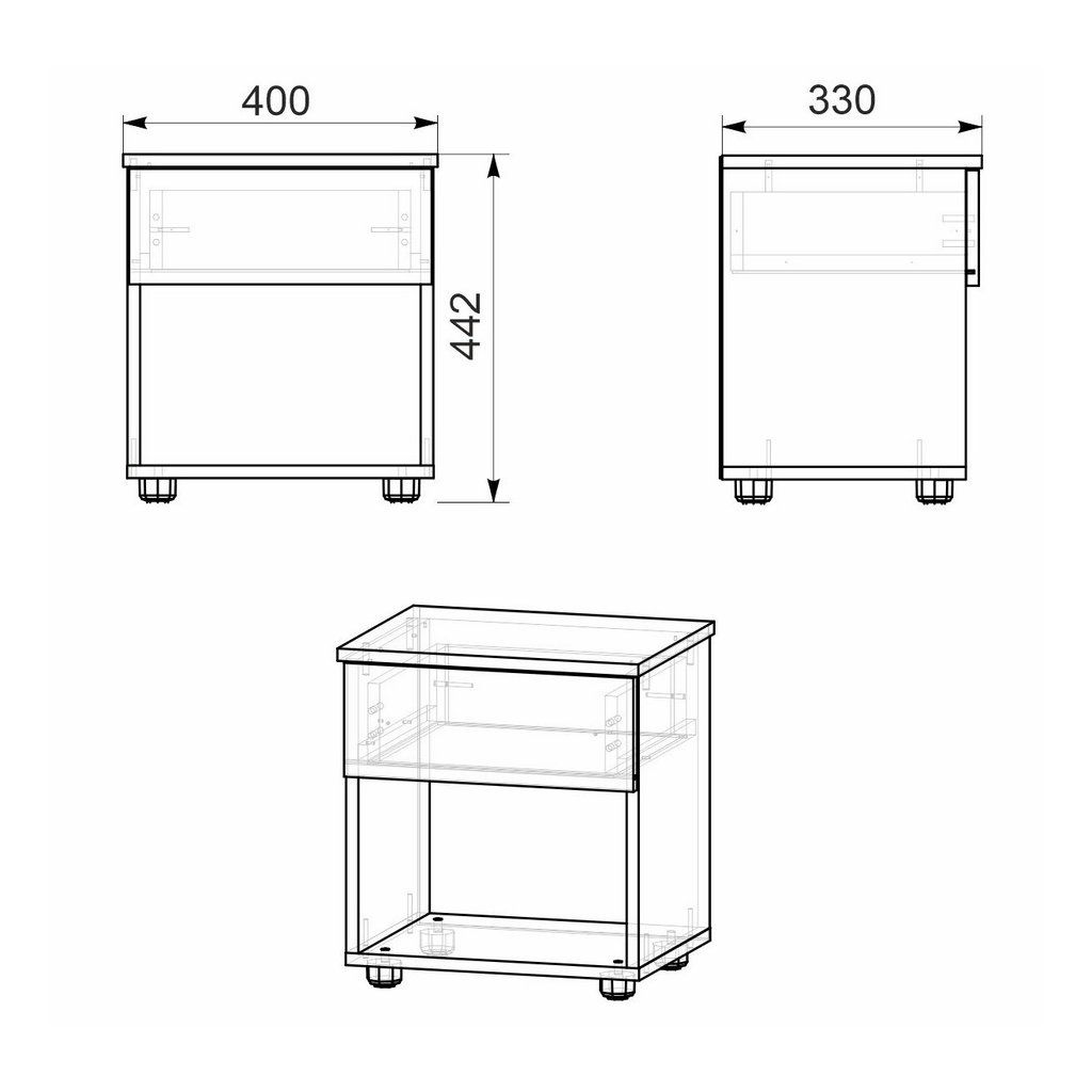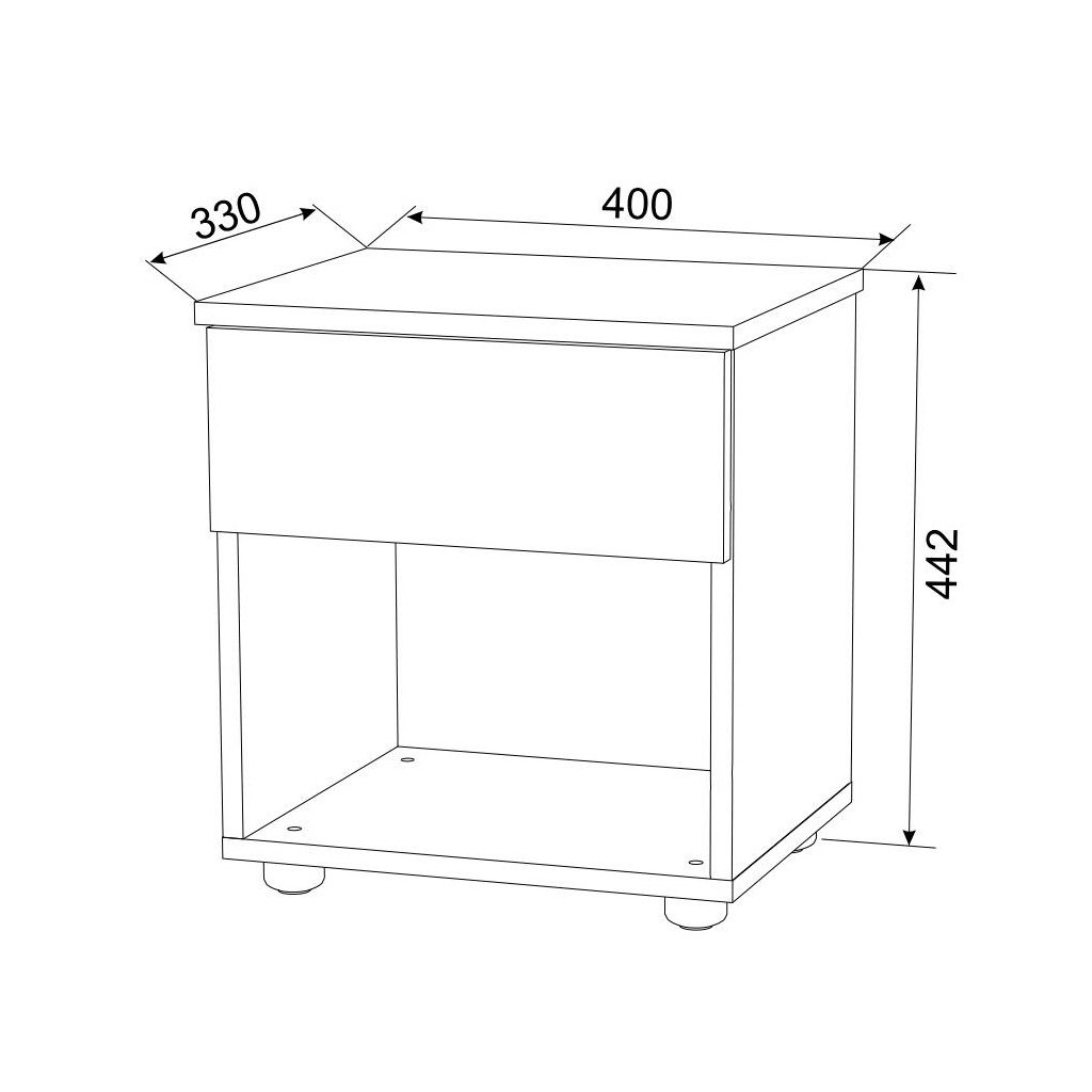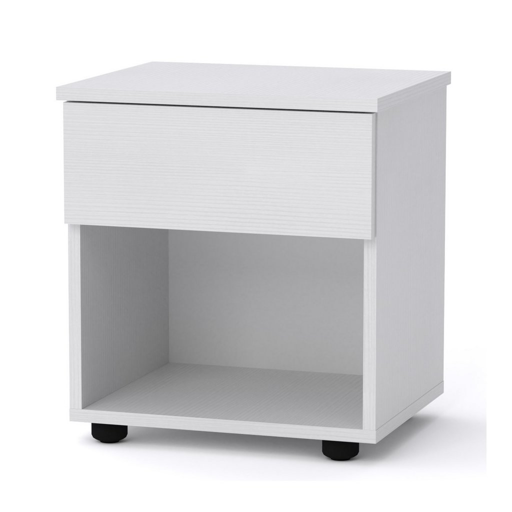 Noční stolek se zásuvkou je vyroben z desky LTD v barvě bílá. Dodáváme v demontovaném stavu.