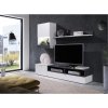 Obývací stěna v bílé barvě s doplňkovým dekorem borovice tmavá.