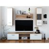Potřebujete jednoduchou, ale přesto praktickou obývací stěnu, v naší nabídce takovou obývací stěnu naleznete. Je záměrně jednoduchá, proto ji můžete doladit do kterékoliv moderní mladé domácnosti. Je vyrobena z laminované dřevotřísky v provedení populární bílé, která je zkombinovaná s dekorem dubu - dub wotan. Skládá se z prodlouženého RTV stolku, dvojpolice a dvou závěsných skříněk. Jedna závěsná skříňka je doplněna sklem. V naší nabídce naleznete i jiné provedení, například kombinaci moderní černé a bílé či jiné.