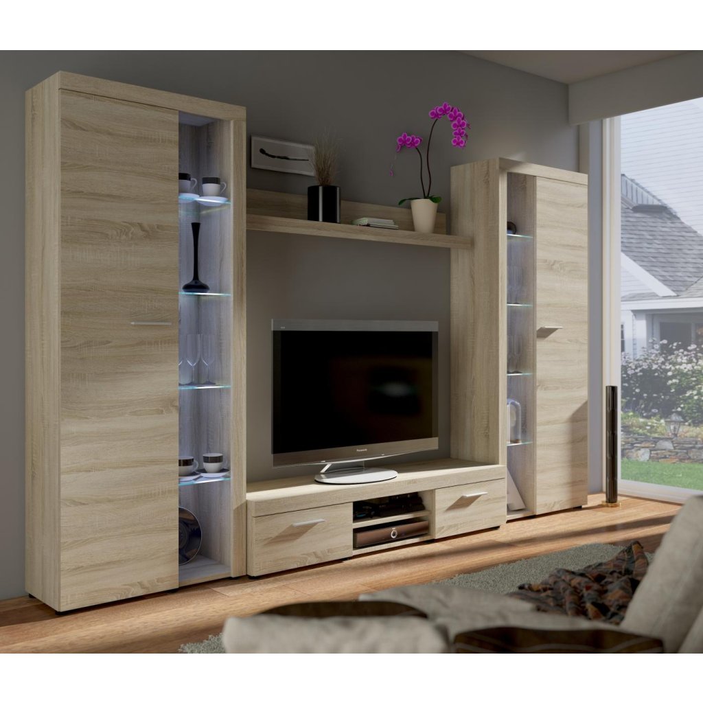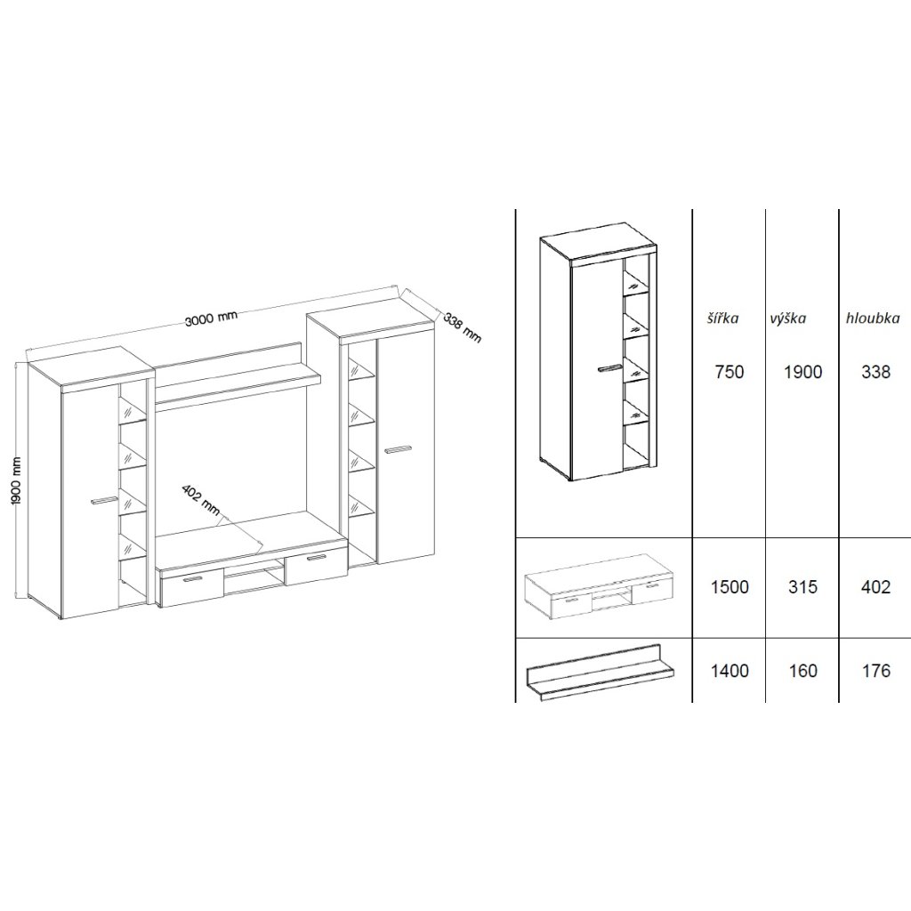 Obývací stěna Rizo patří mezi oblíbené modely moderního nábytku. Nabízí dostatek úložného prostoru a je vhodná i do menších pokojů. Stěna je vyrobena z lamina, které je odolné a snadné na údržbu. Ke stěně nabízíme i několik typů komod ve stejném provedení. Všechny prvky této sestavy jsou dodávány v demontu. Součástí je montážní plánek včetně všech potřebných spojovacích materiálů. Cena je uvedena za bytovou stěnu vyobrazenou na úvodní fotografii, bez komod, doplňků a dekorací. LED osvětlení není v ceně sestavy. Vlivem nastavení monitorů, nebo displejů telefonů, se zobrazení barev na fotografii může od skutečnosti lišit.