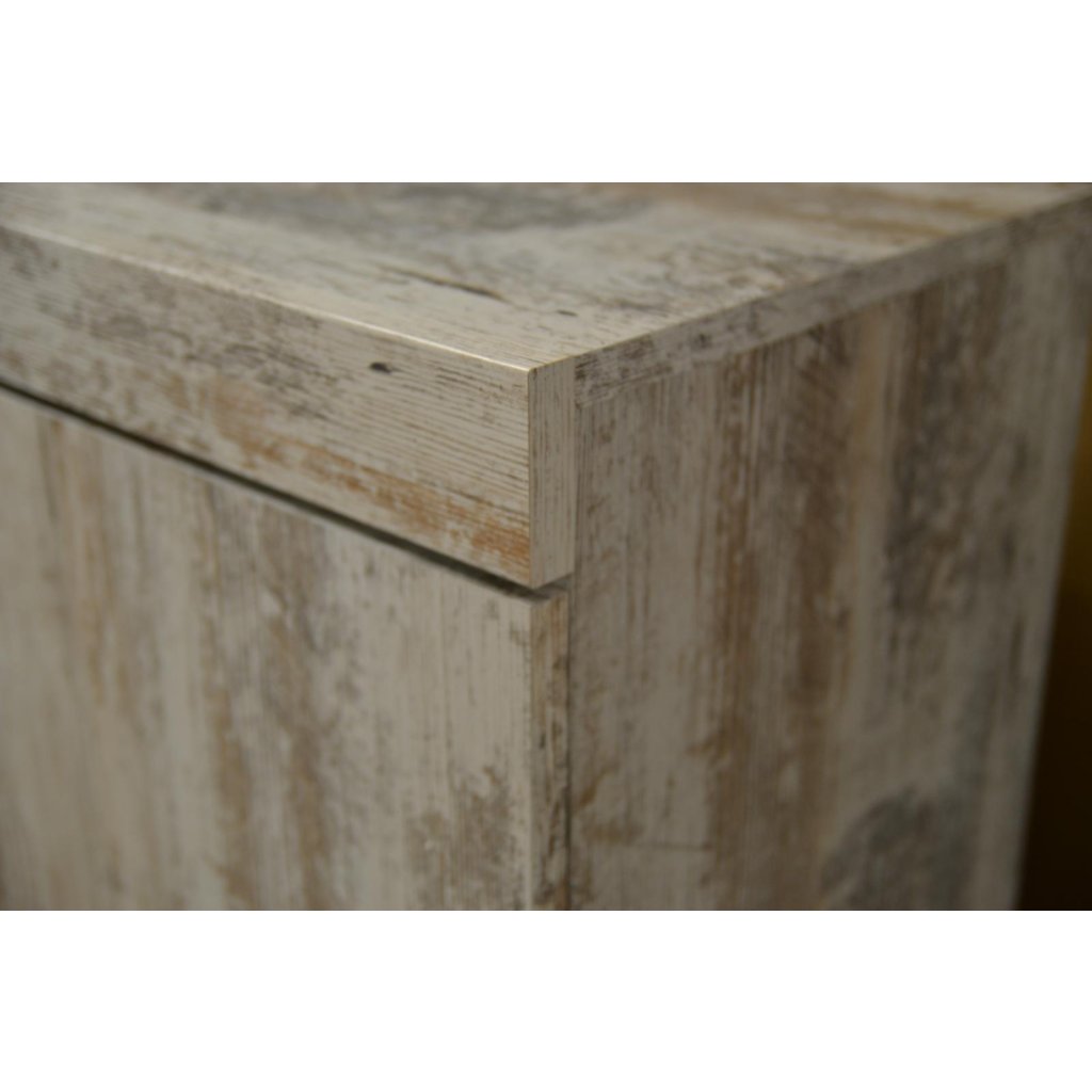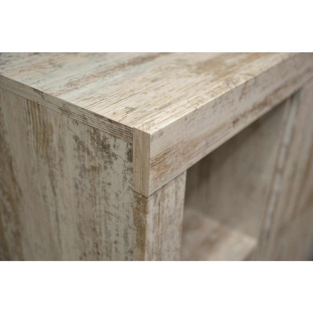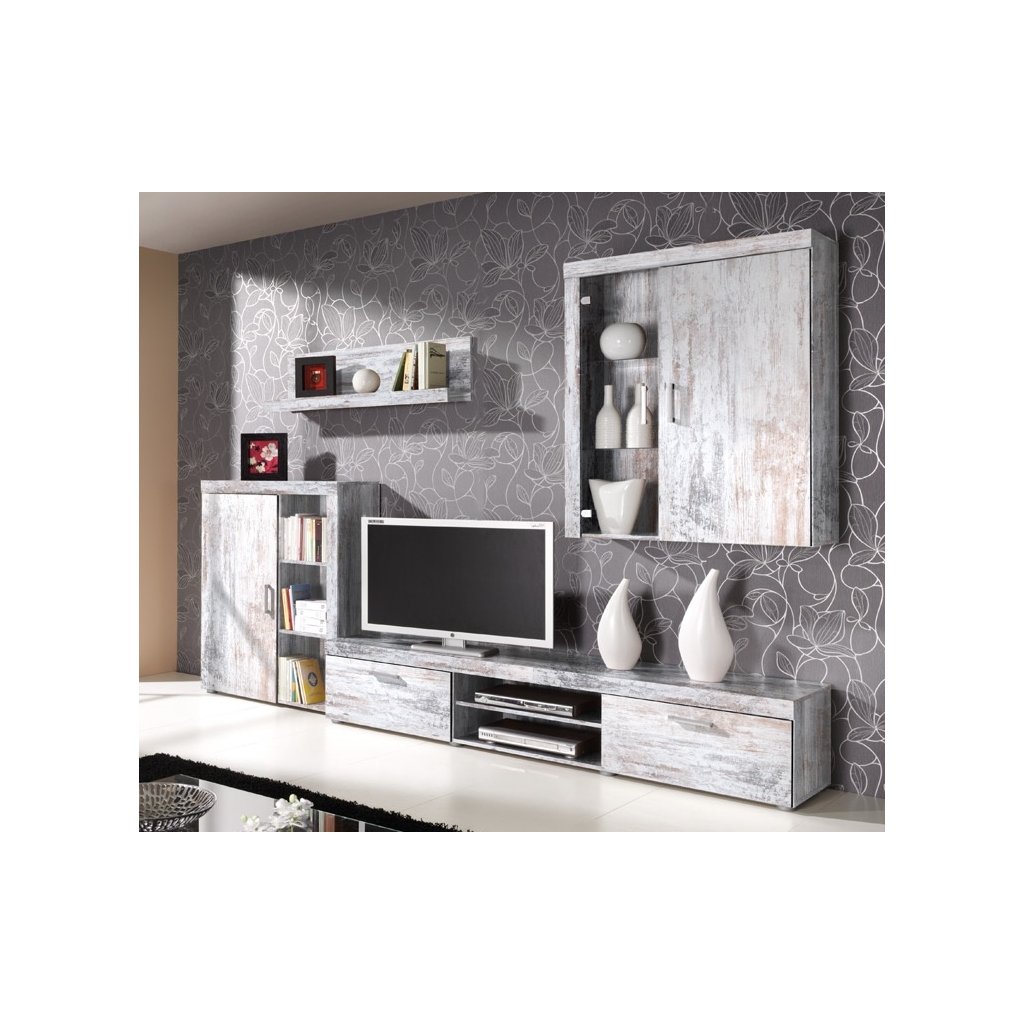 V ceně sestavy je TV stolek, závěsná vitrína, police a skříňka.