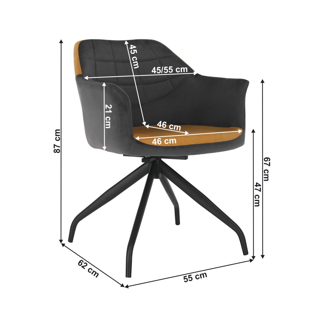 Otočně křeslo, šedá, camel Velvet látka / černá, RATOKO