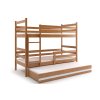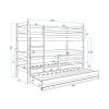 Dětská patrová postel je určena pro všechny, kteří pro své dítě hledají funkčnost, moderní provedení a zároveň praktičnost. Postel je vyrobena z kvalitního borovicového dřeva. Stabilní konstrukce, zaoblené hrany a zábrana na horní i dolní posteli zajišťují maximální bezpečí pro vaše dítě. Žebřík si můžete umístit podle sebe - na pravou či levou stranu. Když vaše dítě omrzí patrová postel je možné palandu rozložit na dvě samostatné postele. Součástí postele je také praktická přistýlka s matrací, kterou můžete využít pro přespání kamarádky. Na fotografii můžete vidět postel v bílém provedení. Plocha pro spaní je 90x200 cm (vrchní a spodní část) a 80x190 cm (přistýlka). Všechny části mají pěnovou matraci a rošt. Pokud by se vám nehodilo toto barevné provedení, z naší nabídky si určitě vyberete jinou barvu.
