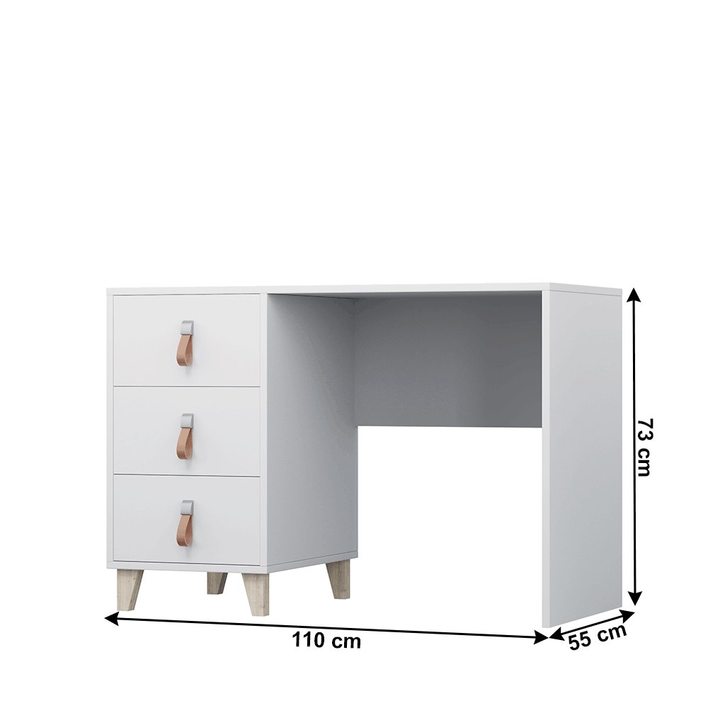 110;48,5;76; Psací stůl FELIX 146, v oblíbené bílé barvě, vyrobený z lamina, v jednoduchém moderním provedení. vnitřní rozměr šuplíku je 32,5cm x 29cm.