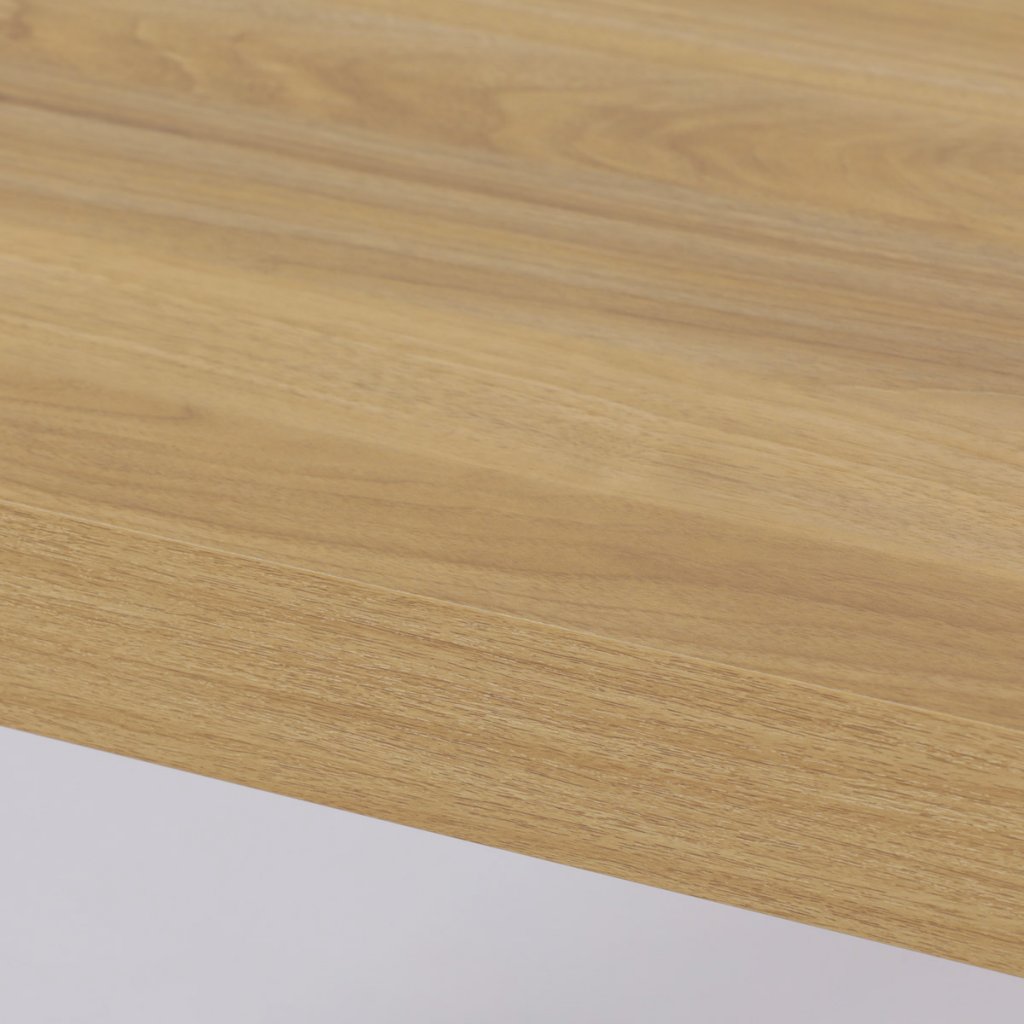Sofistikovanost pokračuje v detailu robustních černých kovových nohou, bezchybně vydestilovaných v podstavci obvodového typu. Krásný kontrast mezi hnědou deskou a černými nohami dodá vašemu prostoru vrstvu hloubky a zároveň zachová auru profesionality.