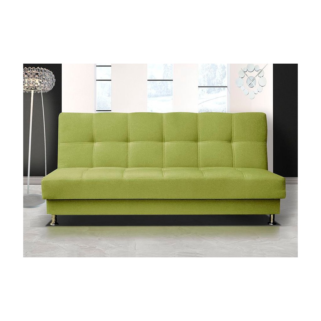 V jednoduchém a zároveň moderním designu je vyrobena právě tato pohovka v zelené barvě. Zajímavým prvkem je prošití s vtahy na sedáku i opěráku. Jednoduchým rozložením pomocí systému klik-klak, vznikne lůžko k občasnému přespání. Nechybí jí ani úložný prostor, který je možné využít na lůžkoviny. Pohodlnost je zaručena kombinací pružin bonell s kvalitní PUR pěnou. V naší nabídce najdete pohovku i v jiném provedení.