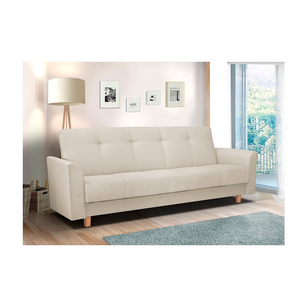 Pohovka v krémové barvě potěší především milovníky retro stylu. Retro styl podtrhují dřevěné nožky a prošití s vtahy. Pohovka je rozkládací pomocí systému klik-klak, a tím vznikne lůžko k příležitostnému přespání. Pohovka obsahuje také praktický úložný prostor. Je velmi pohodlná díky pružinám bonell s kvalitní PUR pěnou. Pokud by se Vám hodila celá sestava (3+1+1), najdete ji také v naší nabídce. Pohovku dodáváme i v jiném barevném provedení.