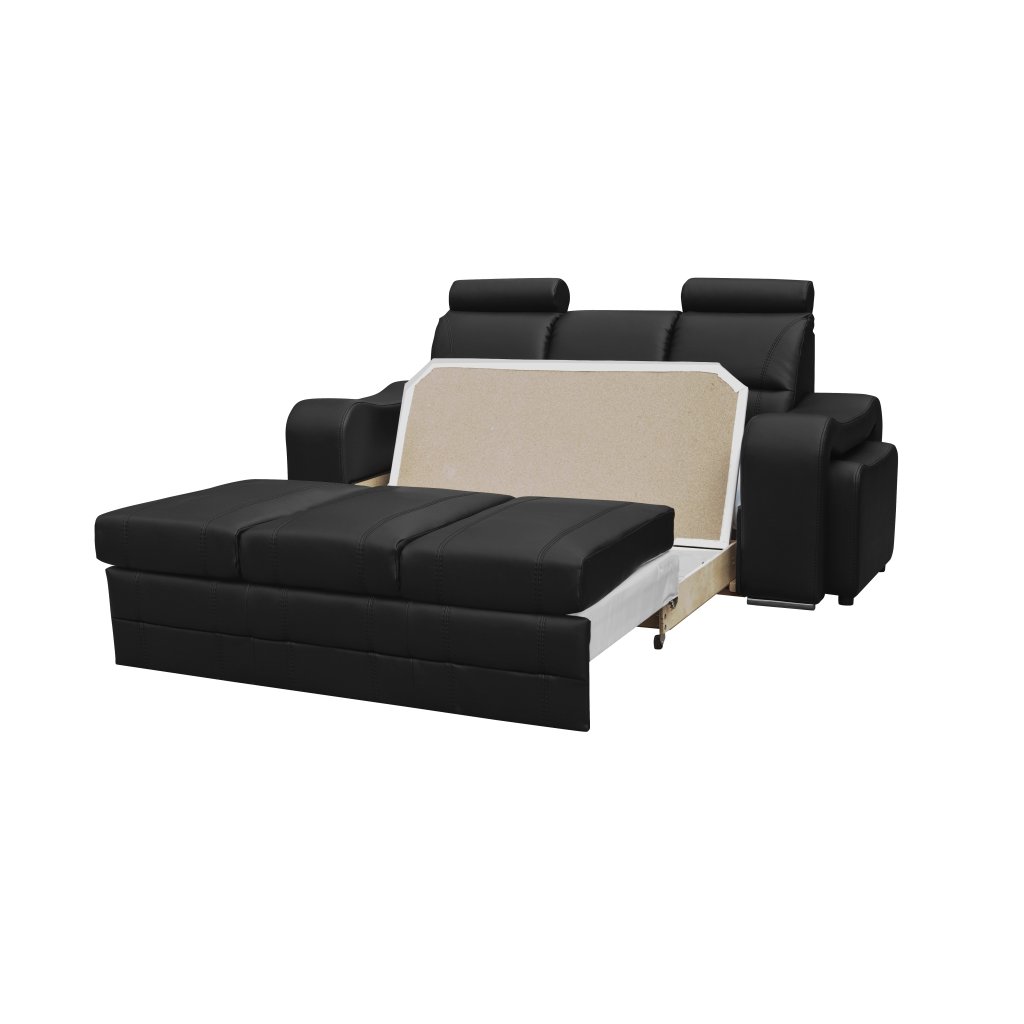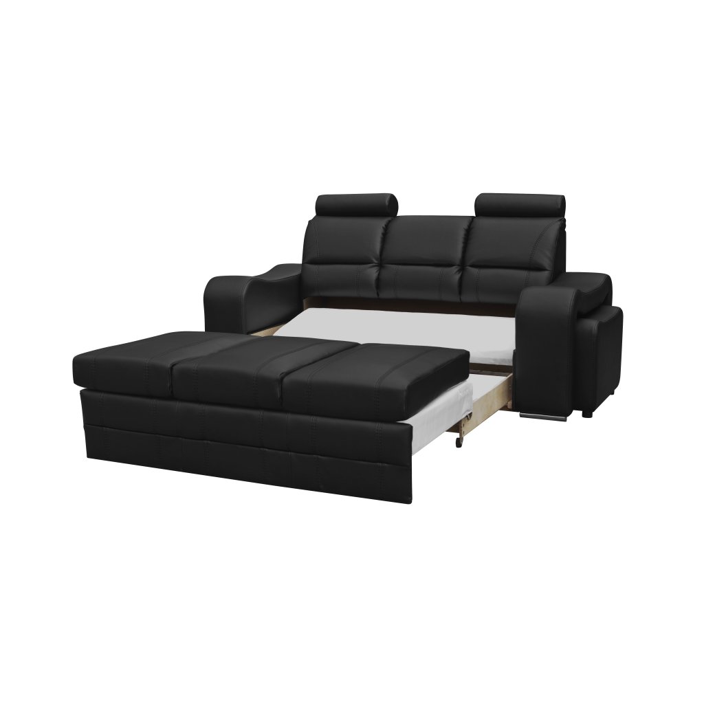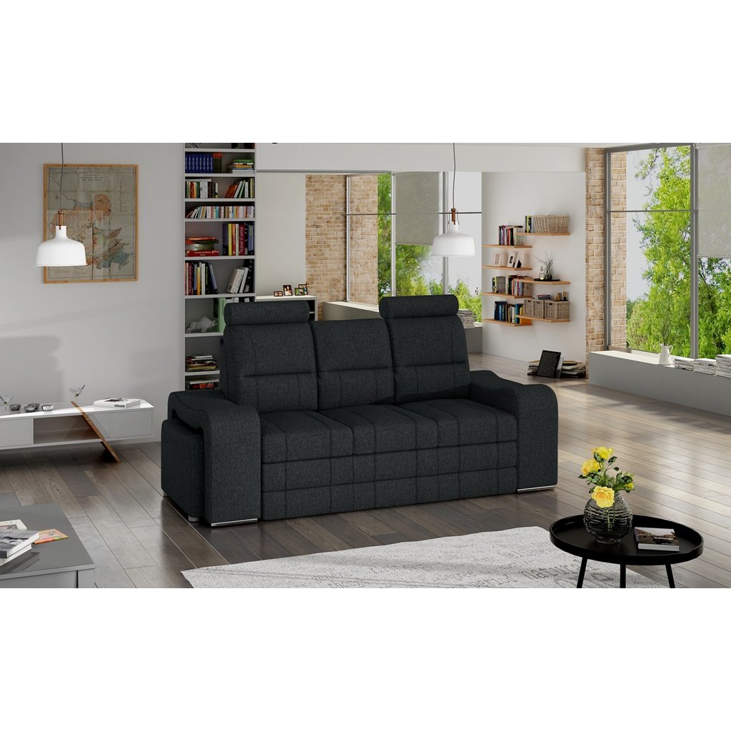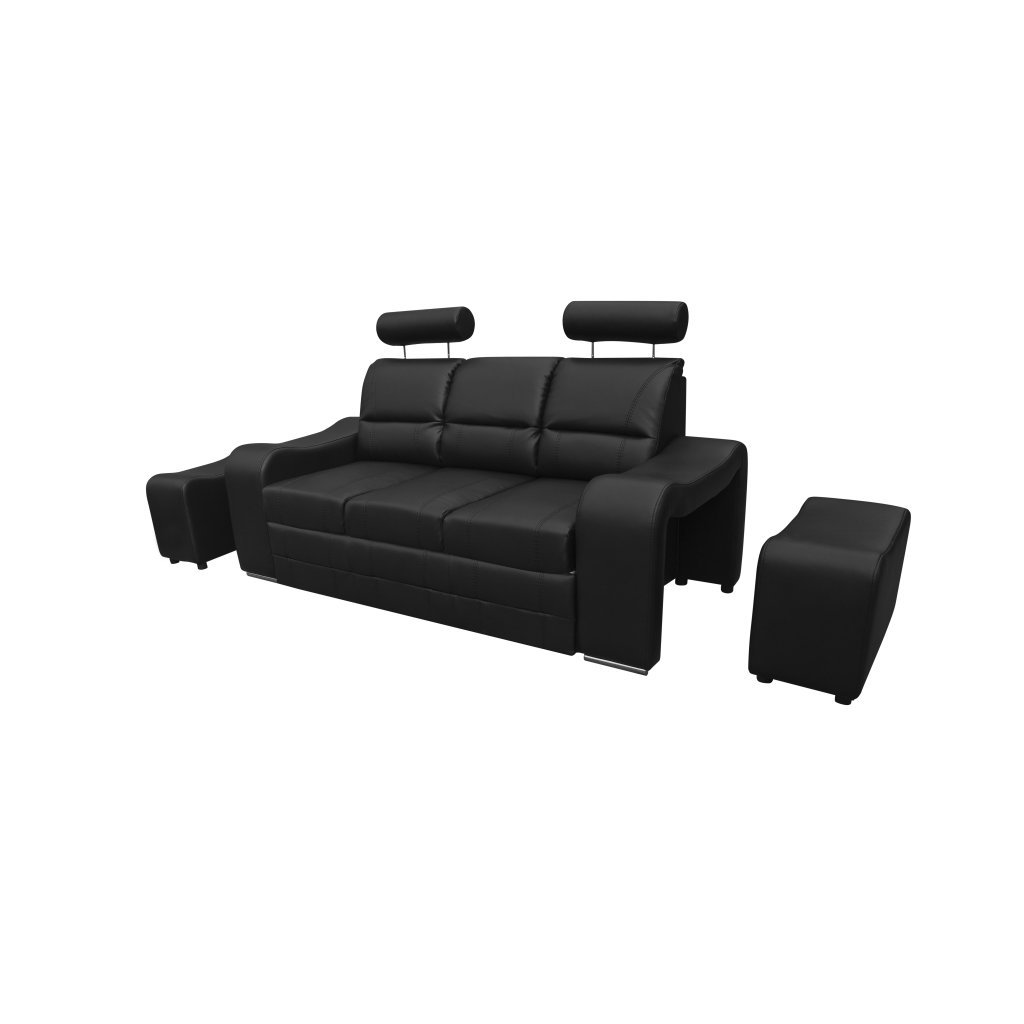 Pohodlí, originalitu a skvělé provedení vám zajistí tato pohovka v černé látce. Kombinace pružin faliste s kvalitní PUR pěnou, zajišťují velmi pohodlné sezení. Pohodlnost podtrhují dvě výškově nastavitelné opěrky hlavy. V ceně jsou 2 taburety, které se dají ukrýt v područích. Jednoduchým rozložením vznikne lůžko k příležitostnému přespání a praktický úložný prostor je vhodný např. na lůžkoviny. Pokud by se vám nehodilo toto barevné provedení, z naší nabídky si určitě vyberete jinou barvu.