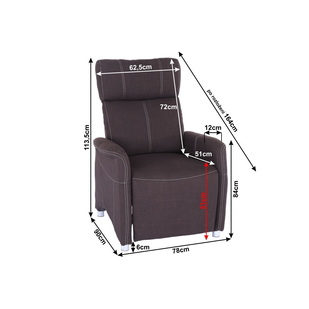 Křeslo barva hnědá materiál látka a čalounění potah látka moderní styl relaxační polohovací relaxační.