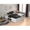 Postel MICHIGAN NEW, v trendy bílé barvě, vyrobena z lamina, v jednoduchém moderním provedení. Postel je vhodná především do menších prostor - velikost spací plochy je 140x200 cm. Součástí postele je praktický úložný prostor v provedení dvou šuplíků ve stejné velikosti a odkládacího prostoru.