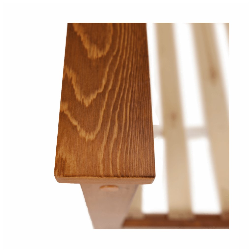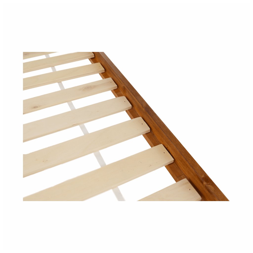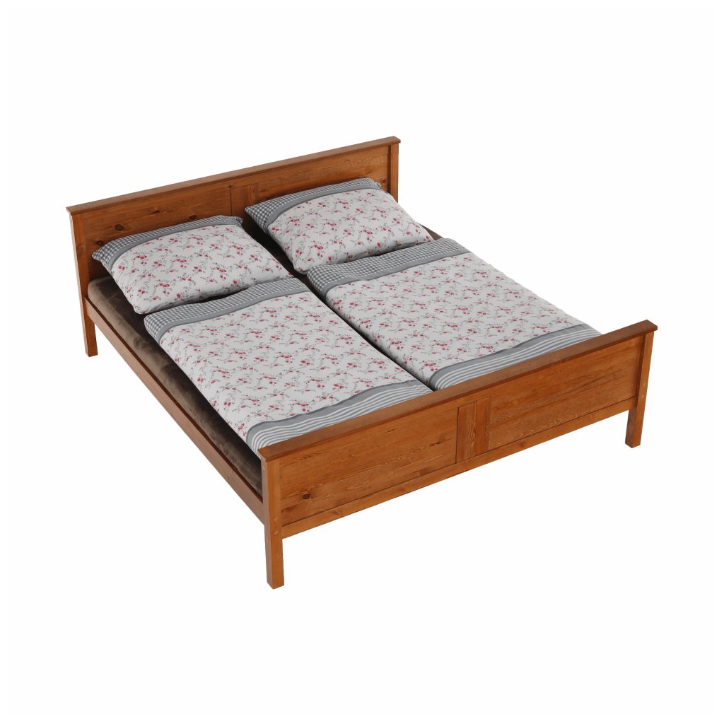 Manželská postel 160x200 cm z borovicového dřeva barvená do dekoru dub s laťkovým roštem.