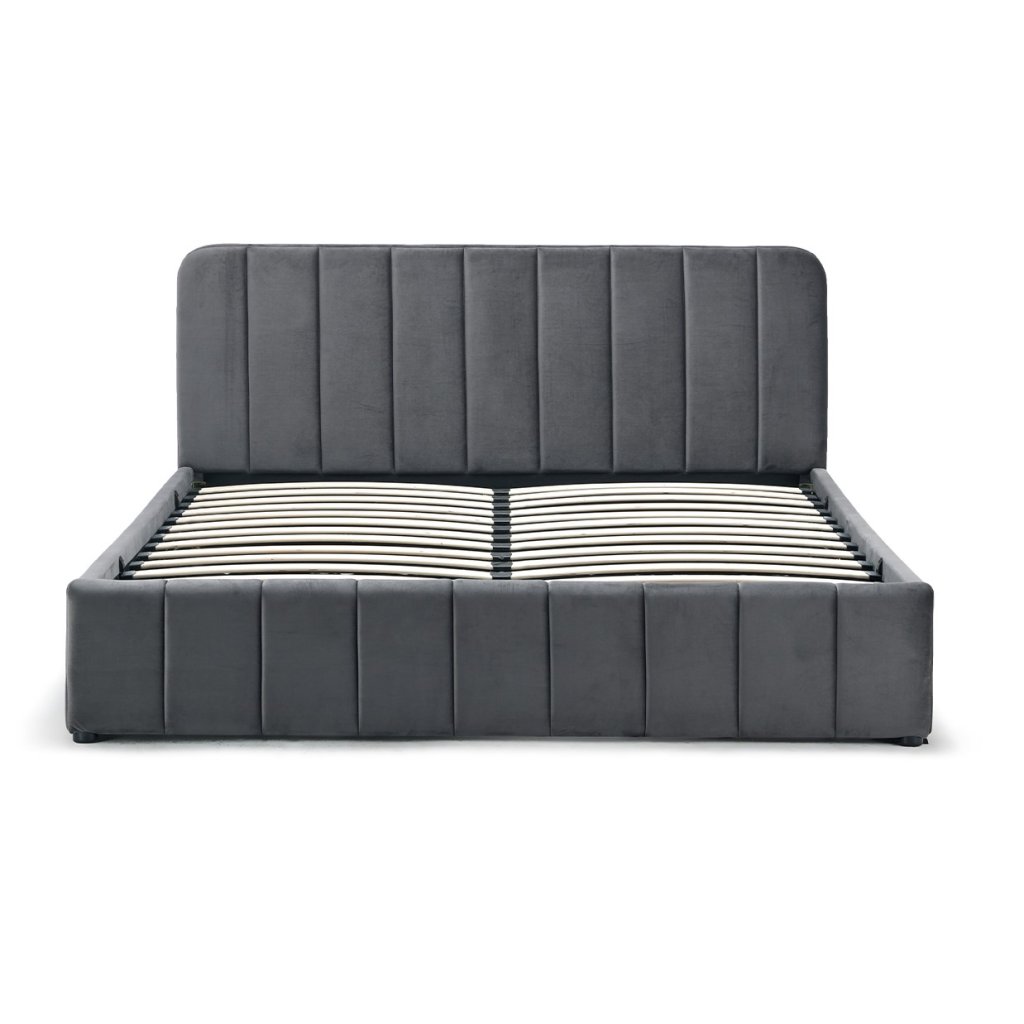 Postel je dokonalým spojením moderního designu a každodenní praktičnosti. Její čalouněné čelo s vertikálním prošíváním dodává celé posteli elegantní vzhled a zajišťuje pohodlí při čtení nebo odpočinku. Díky výklopnému lamelovému roštu poskytuje postel velkorysý úložný prostor, kam snadno uložíte lůžkoviny, deky nebo sezónní oblečení. Kvalitní konstrukce a pevné materiály zaručují dlouhou životnost a stabilitu, zatímco sametový potah v šedém odstínu vnese do ložnice pocit útulnosti a stylu. Tato postel je ideální volbou pro každého, kdo hledá elegantní postel s chytrým řešením úložného prostoru.