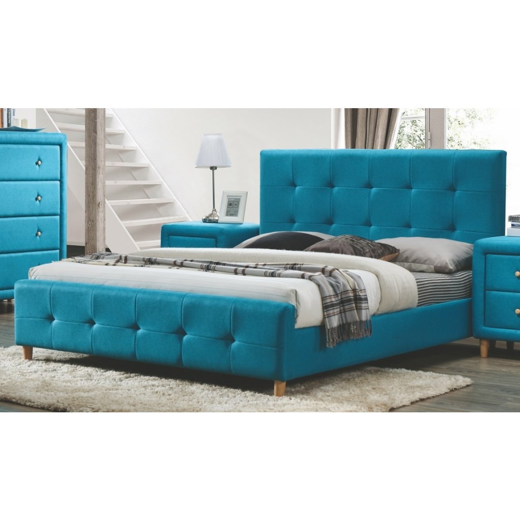 Manželská postel 180x200 cm s čalouněním v modré barvě s roštem KN428 POSLEDNÍ KUSY ZA TUTO AKČNÍ CENU