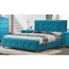 Manželská postel má velmi stylový vzhled a bude dominantou každé ložnice. Vysoké čelo má zajímavé decentní prošívání stejně tak jako zbytek potahu. Potah je v modré tyrkysové barvě a nožky jsou ze dřeva. Čalounění je vyplněné měkkou PUR pěnou. Rošt je součástí postele, matraci je třeba doobjednat. Doporučujeme vhodný rozměr matrace 180x200 cm nebo 2x 90x200 cm. Výška roštu od země je 26 cm, výška bočnic nad roštem 6 cm. Výška čela postele je 110 cm.
