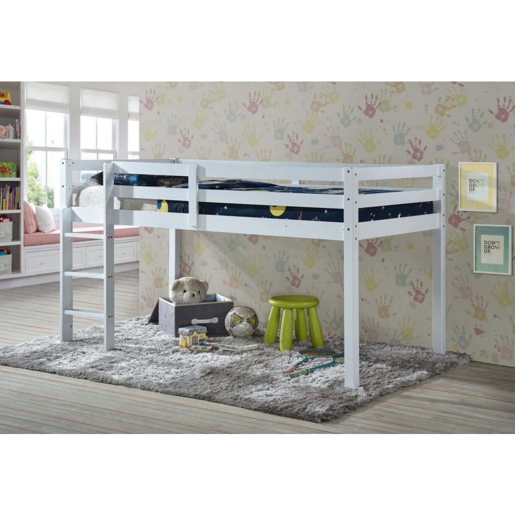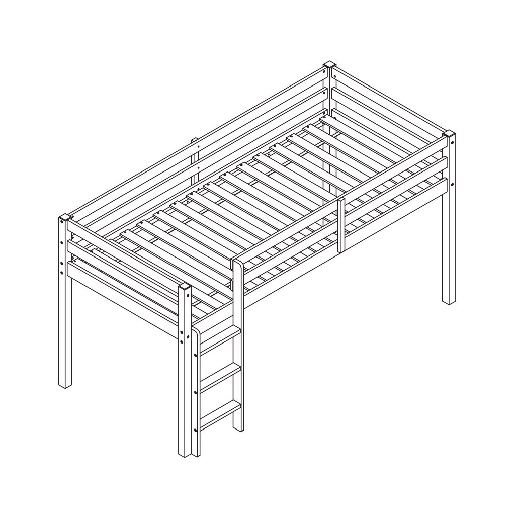 Dřevěná postel patrová v barevném provedení matná bílá. Umístěním postele v patře se nabízí využití prostoru pod postelí jako hrací koutek. Součástí je laťový rošt, matraci je potřeba doobjednat - 90 x 200 cm. Výška pod postelí je 752mm, žebřík nelze umístit na opačnou stranu.Dodáváme v demontovaném stavu.