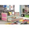 Dětská postel s přistýlkou v dekoru borovice v kombinaci s růžovou barvou 90x200 cm F1133
