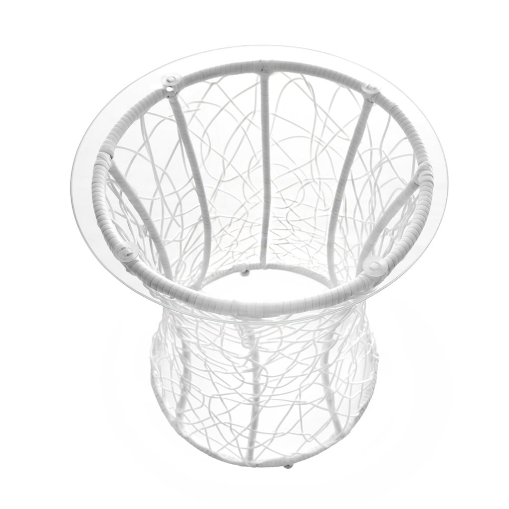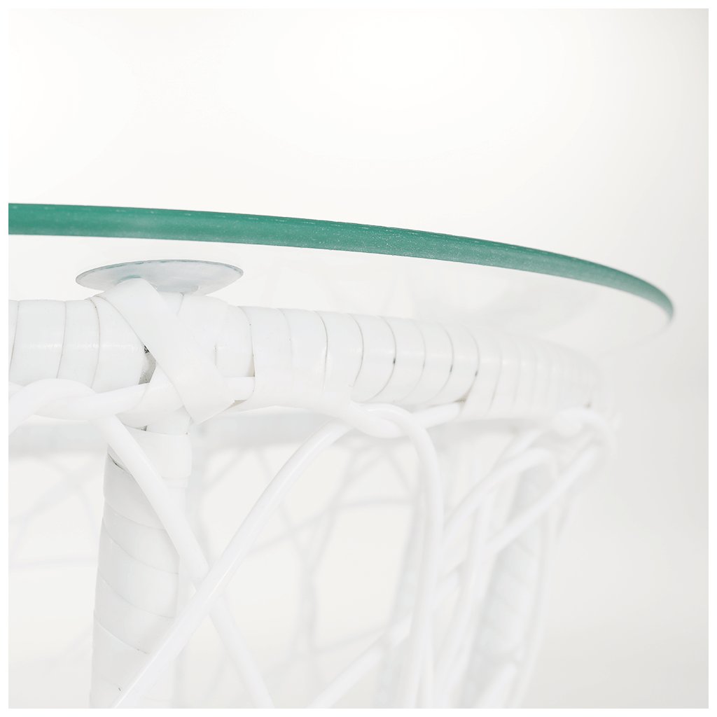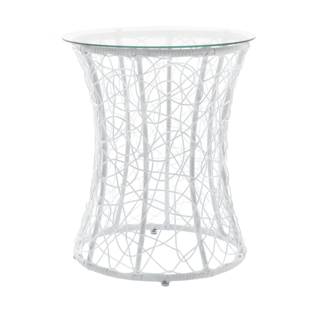 Příruční stolek vhodný do interiéru i exteriéru.Materiál: umělý ratan / tvrzené sklo