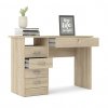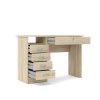 Psací stůl FELIX 163, v oblíbeném dekoru dub, vyrobený z lamina, v jednoduchém moderním provedení. Po praktické stránce nabídne dostatek úložného prostoru, prostřednictvím pěti zásuvek, z nichž jedna zásuvka je uzamykatelná a jedné odkládací poličky. Skvěle se hodí především do dětských a studentských pokojů, ale také do kanceláře či domácí pracovny.