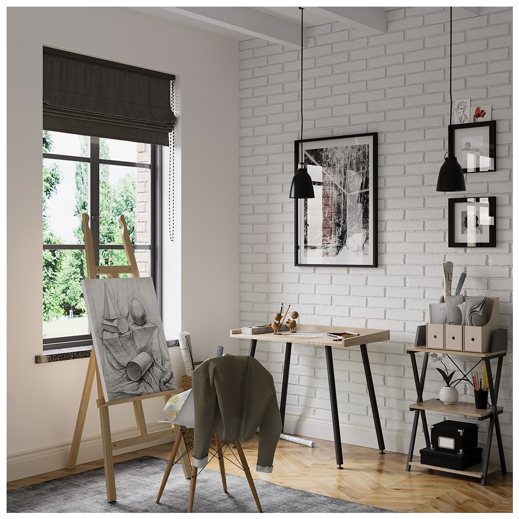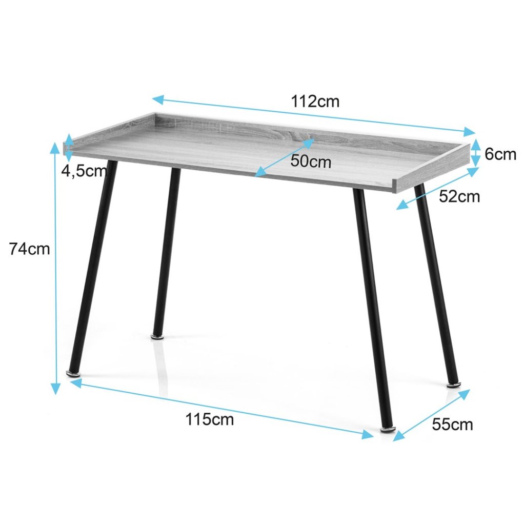 Pracovní stůl v jednoduchém industriálním stylu, v moderním dekoru ořech, s kovovými nastavitelnými nohami v černé barvě. Díky nastavitelným nohám stolu si lze výšku stolu uzpůsobit, tak jak vám to bude vyhovovat, a to v rozmezí: 74-78 cm. Deska stolu je vyrobena z dřevotřísky potažené melaminem.