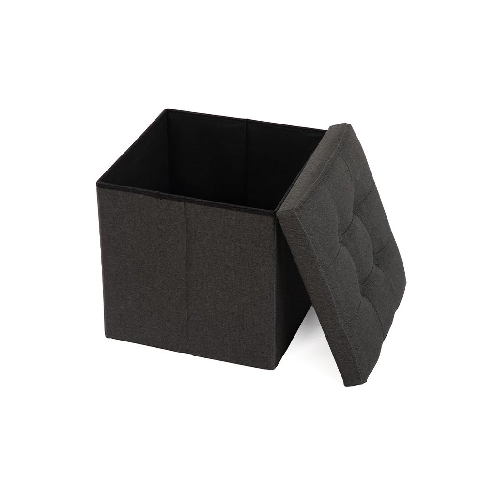 Praktická a elegantní taburetka s funkcí úložného prostoru. Vyrobena z odolné MDF konstrukce potažené kvalitní textilií v tmavě šedé barvě. Víko je čalouněné s jemným prošíváním, které dodává taburetce moderní vzhled. Díky skládacímu provedení lze úložný box snadno složit a uschovat, když není používán.Tento produkt je ideálním řešením do obývacích pokojů, ložnic, dětských pokojů i kanceláří. Slouží jako pohodlné sezení, podnožka i praktický úložný prostor na deky, hračky či drobnosti. Vhodné pro zákazníky, kteří ocení multifunkční nábytek s moderním designem a snadnou manipulací.