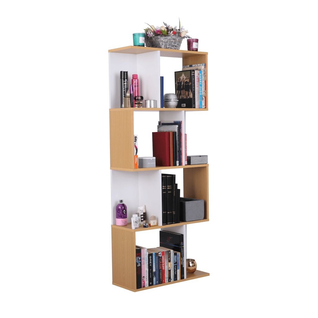 Knihovna barva hnědá dekor borovice materiál lamino moderní designový styl přímý otevřený matný povrch.