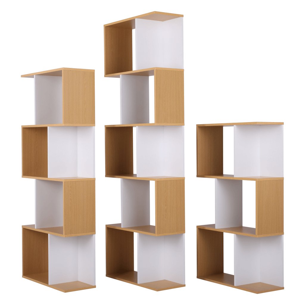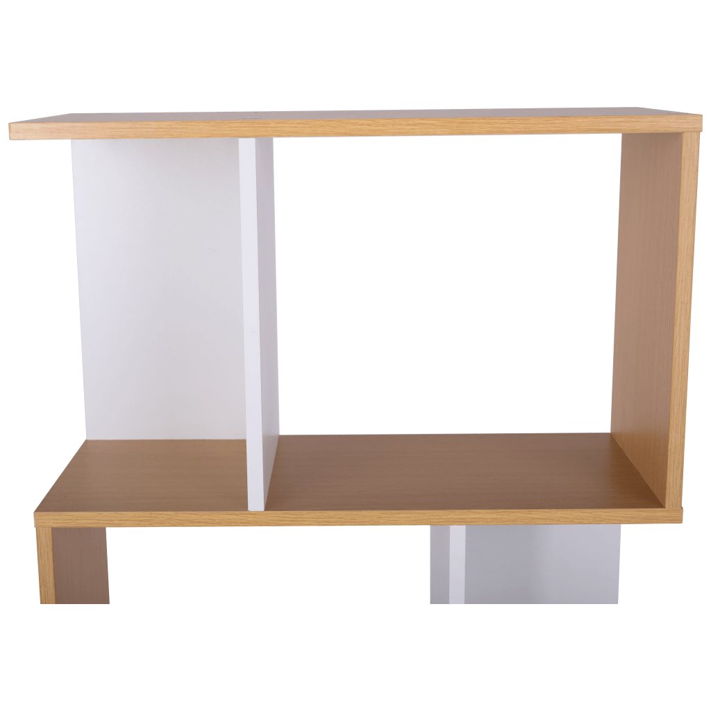 Regál s otevřeným úložným prostorem v kombinaci dekoru borovice a bílé barvy.