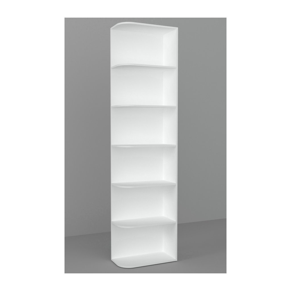 Praktický rohový regál ke skříni vhodný na obě strany. Nezvyklá výška Vám nabídne větší úložný prostor. Korpus je z kvalitní LTD desky v barvě bílá. Regál obsahuje čtyři police (na obrázku jich je vyobrazeno pět). Dodáváme v demontovaném stavu.