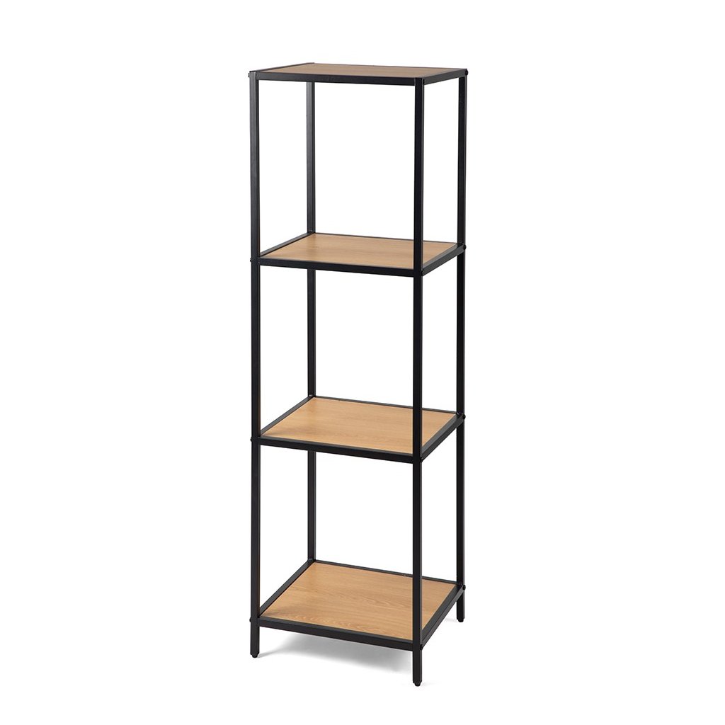 Moderní policový díl s minimalistickým designem. Čtyři praktické police v dekoru přírodního dřeva. Stabilní kovová konstrukce v černém provedení. Ideální pro ukládání knih, dekorací či drobných předmětů. Spojuje funkčnost, jednoduchost a industriální...
