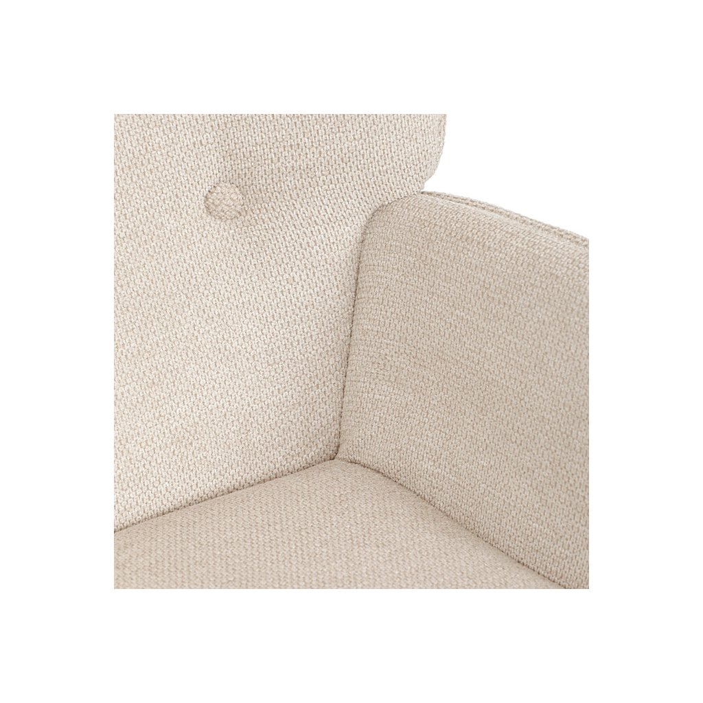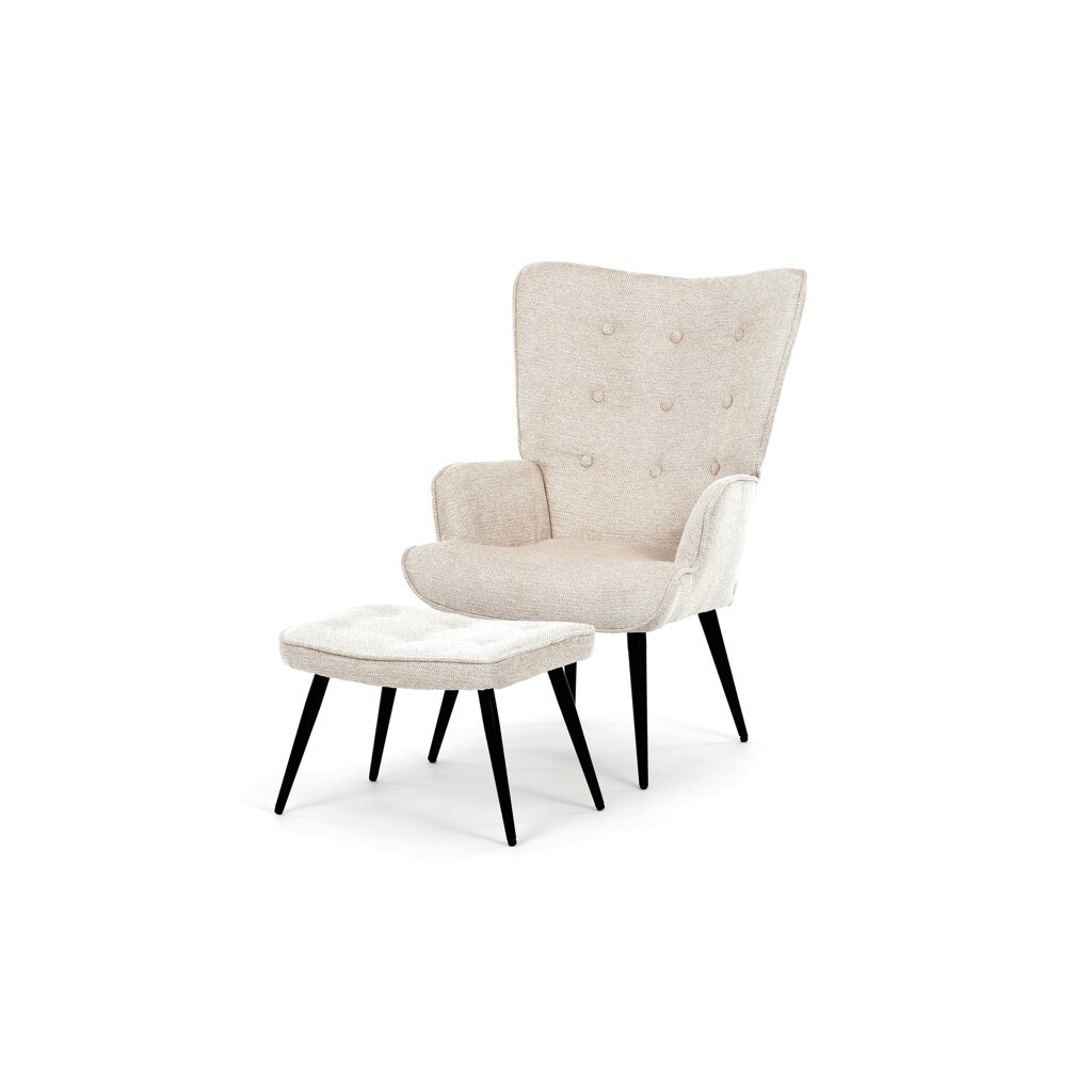 Relaxační křeslo s podnožkou v béžovém odstínu je potažené vodoodpudivou látkou, která usnadňuje údržbu a zvyšuje odolnost proti polití. Čalounění je příjemné na dotek a díky prémiové tkanině nabízí dlouhodobý komfort i při delším sezení. Křeslo disponuje pevnými černými kovovými nohami, které zajišťují stabilitu a bezpečnost. Součástí je také bonusový taburet se stejným potahem a designem, který umožňuje pohodlné opření nohou a doplňuje relaxační zážitek. Ergonomicky tvarované područky podporují správnou polohu paží a přispívají k celkovému pohodlí.
