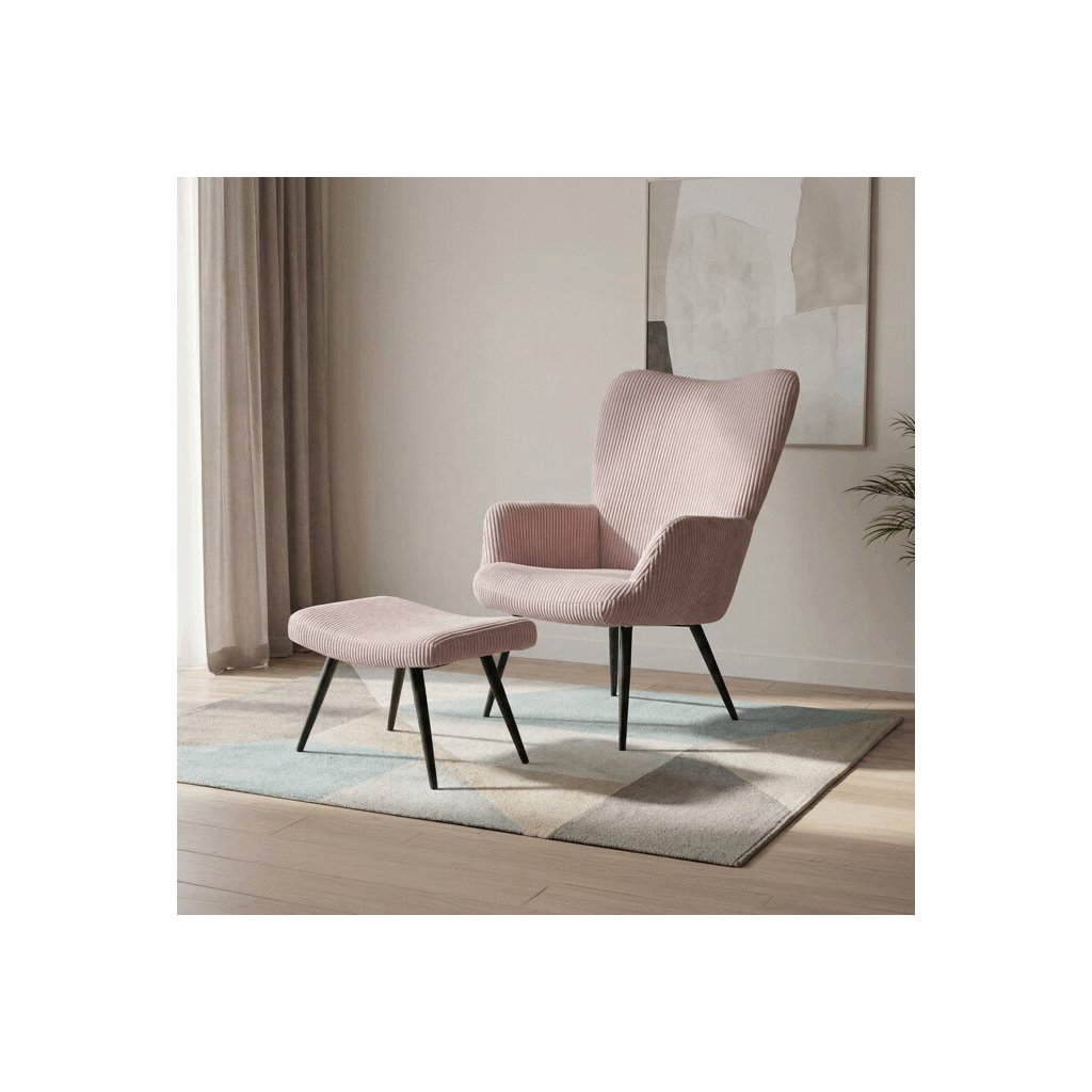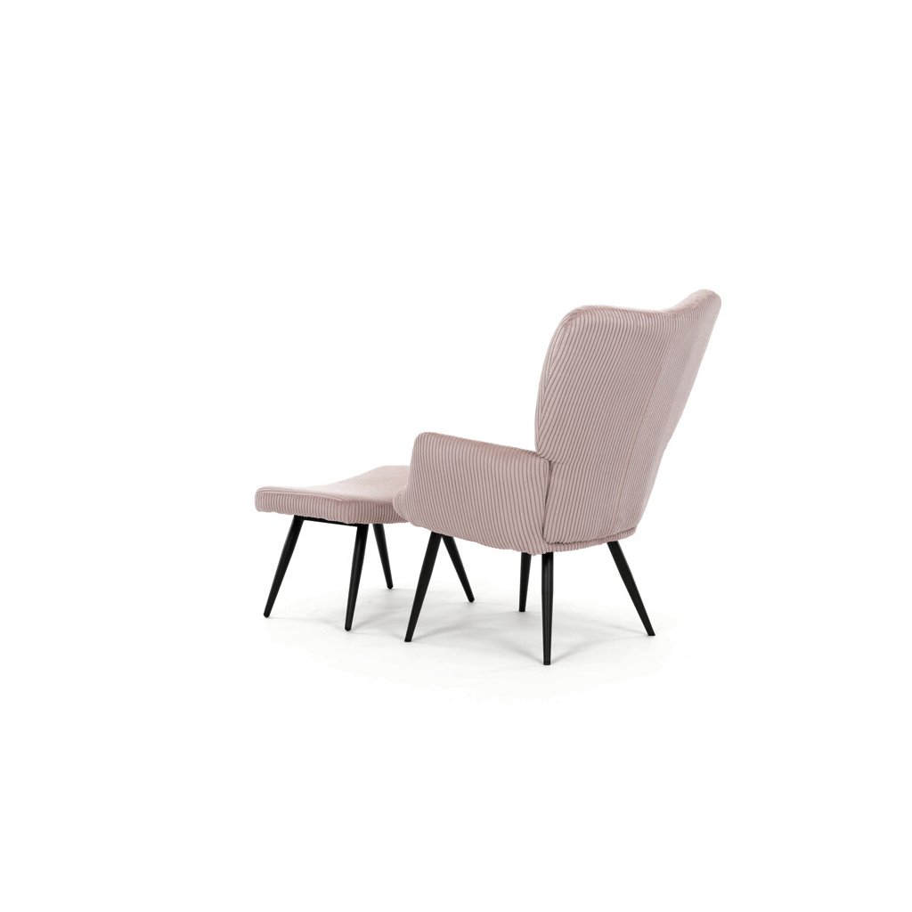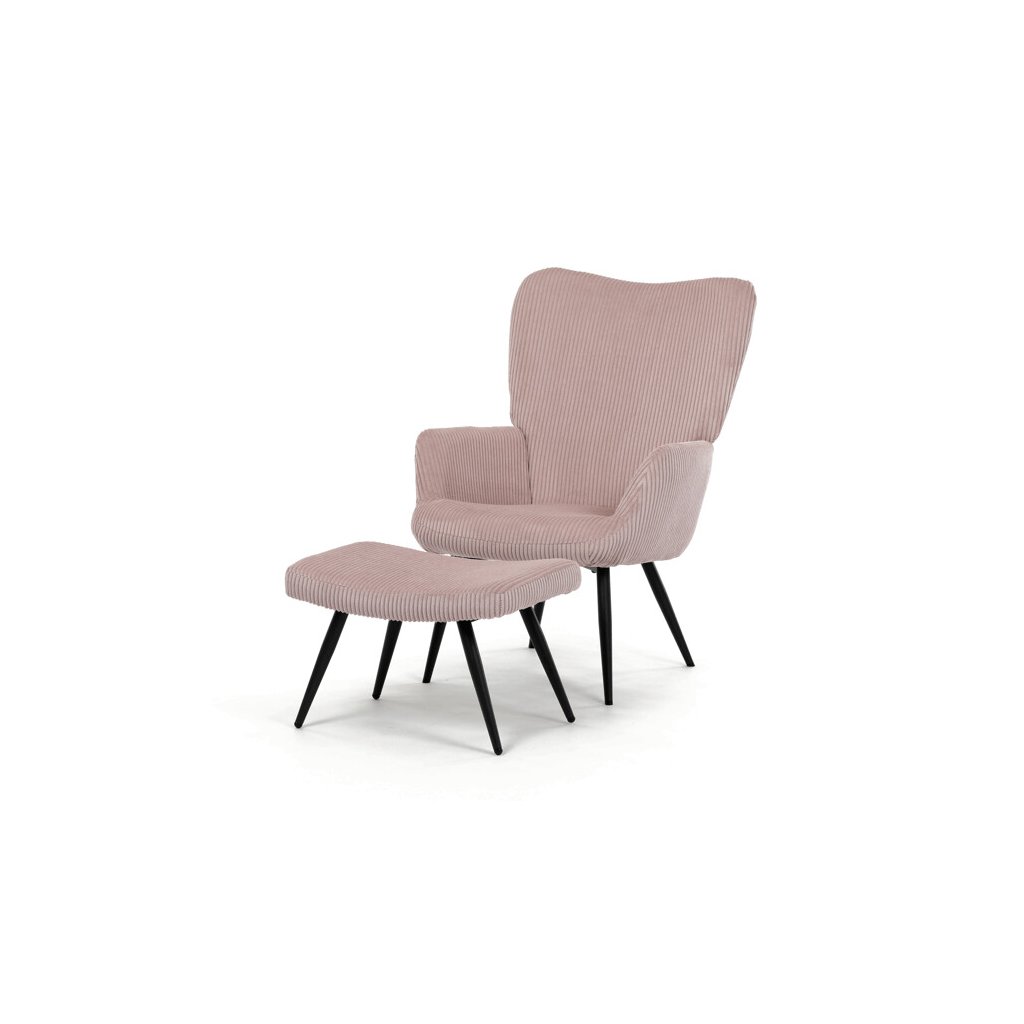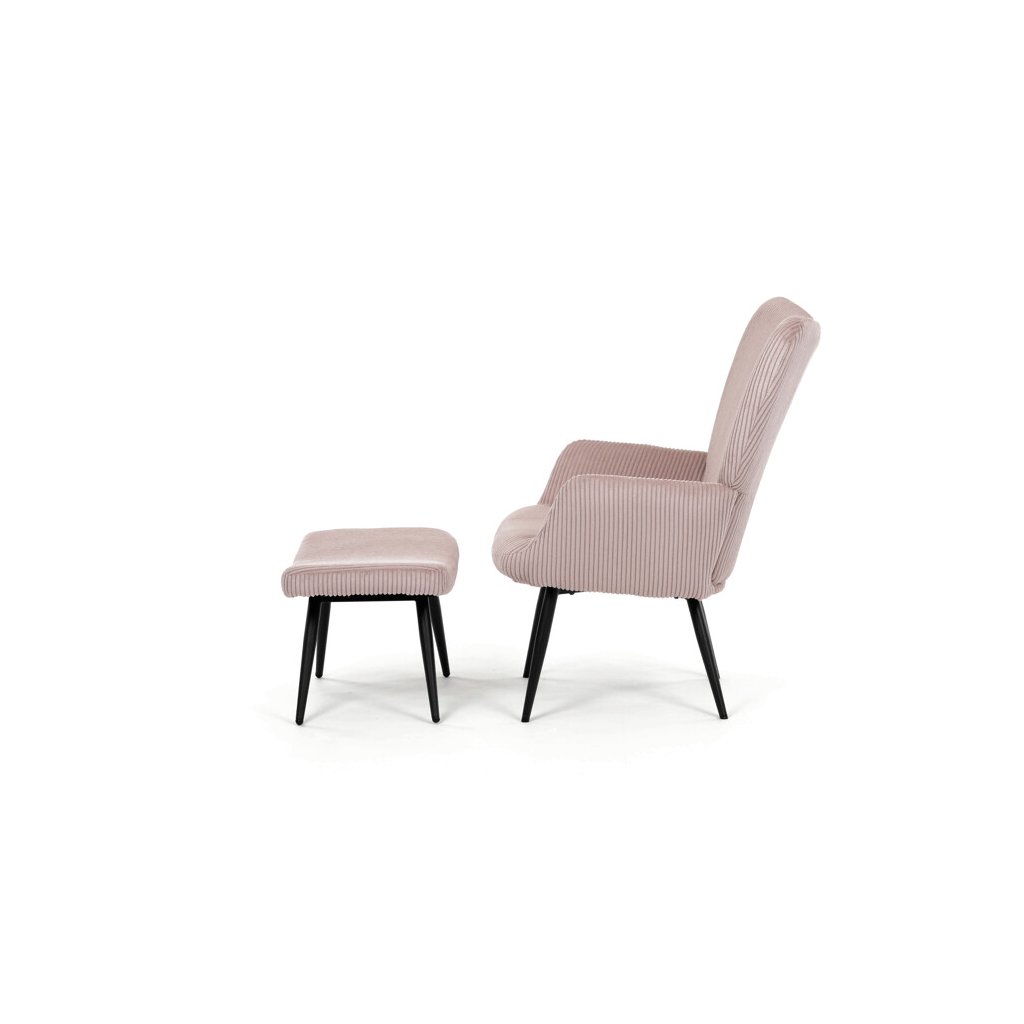 Relaxační křeslo s podnožkou v růžovém manšestru nabízí pohodlné posezení s dostatečnou oporou díky ergonomicky tvarovanému opěradlu a integrovaným područkám. Čalounění z manšestrové látky přináší příjemnou texturu a vizuální efekt, který zvýrazňuje jemné žebrování materiálu. Stabilní nohy z černého kovu zajišťují pevnost a dlouhou životnost, přičemž jejich úzký tvar dodává křeslu lehkost a moderní vzhled. Součástí je praktický taburet se stejným designem a materiálem, který umožňuje pohodlné opření nohou a doplňuje relaxační zážitek. Křeslo není otočné ani rozkládací, jeho rozměry a pevná konstrukce jsou navrženy pro stabilitu a komfort.