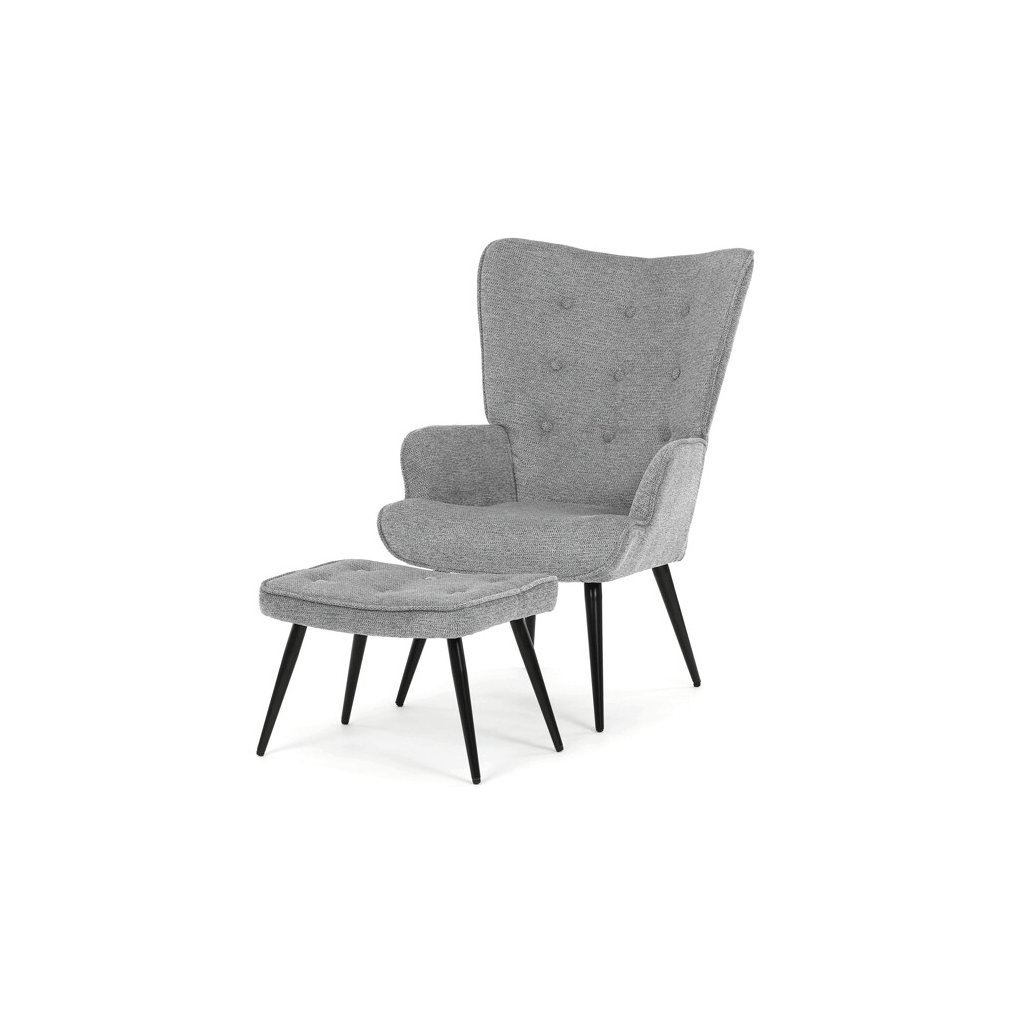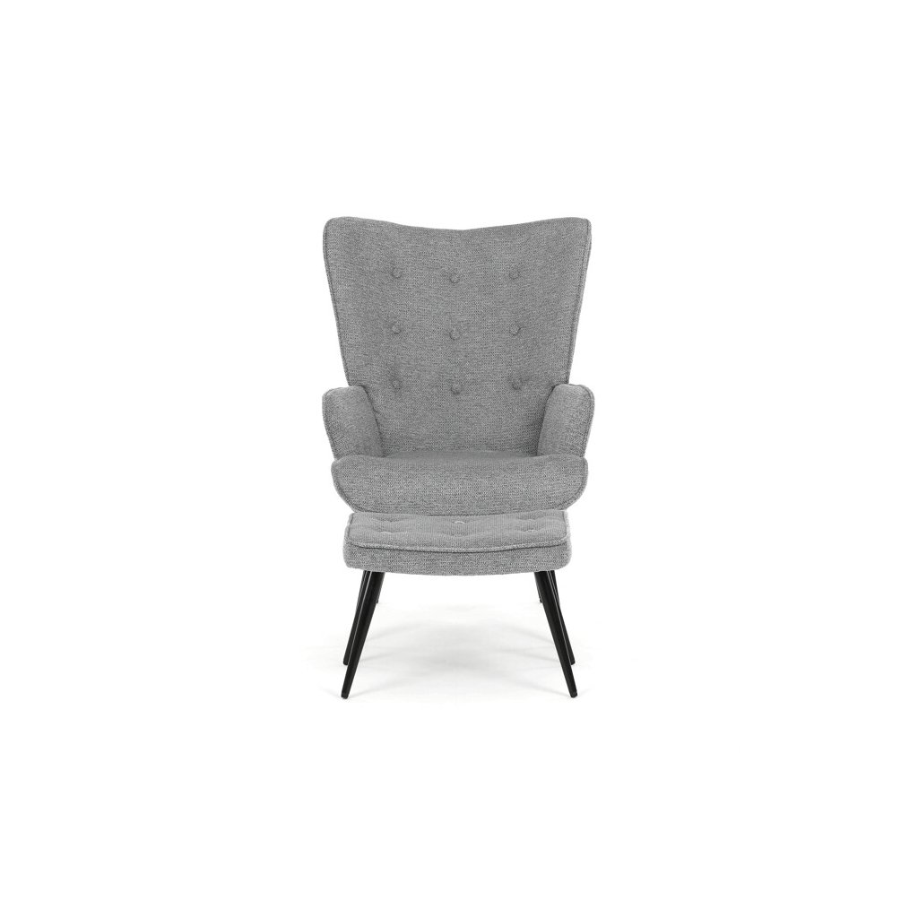 Relaxační křeslo s podnožkou v šedé barvě je potažené vodoodpudivou prémiovou látkou, která usnadňuje údržbu a zvyšuje odolnost proti polití. Pevná kovová podnož v černém provedení zajišťuje stabilitu a dlouhou životnost. Křeslo disponuje pohodlnými čalouněnými područkami a ergonomicky tvarovaným opěradlem s decentním prošitím, které podporuje relaxaci a komfort při sezení. Součástí je také samostatný taburet se stejným materiálem a designem, který umožňuje pohodlné opření nohou. Tento set je vhodný pro odpočinek v obývacím pokoji či pracovně, kde oceníte kombinaci funkčnosti a moderního vzhledu.