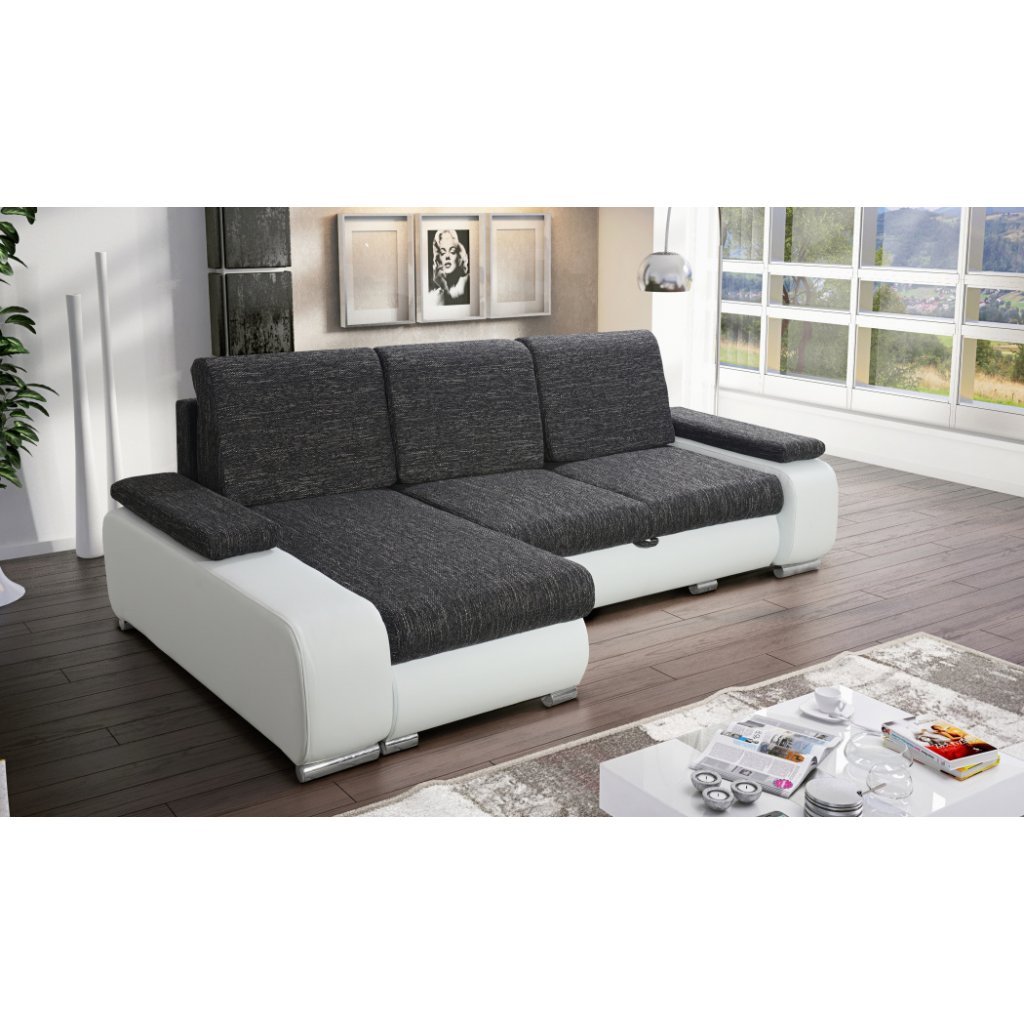 Rozkládací rohová sedačka v bílé a šedé barvě KN282