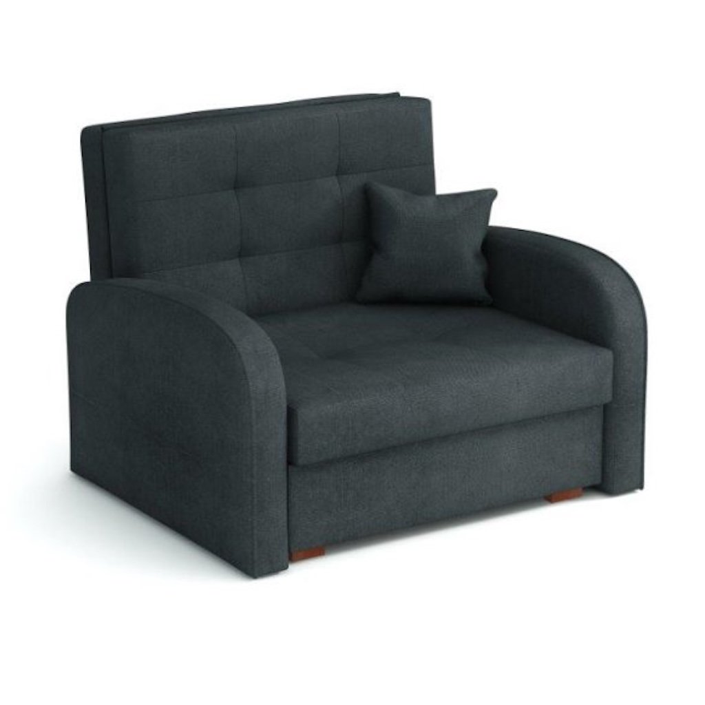 Moderní rozkládací křeslo je vhodné umístit do dětského, studentského či hostinského pokoje. Jednoduchým rozkladem pomocí automatu získáte lůžko vhodné k příležitostnému přespání. Křeslo je velmi měkké a pohodlné, což zaručuje kombinace vlnitých pružin s PUR pěnou. Praktický úložný prostor můžete využít např. na deku či polštář. Křeslo je potaženo kvalitní látkou v šedé barvě. V ceně je 1 dekorační polštář. K tomuto křeslu doporučujeme koupit pohovku ve stejném provedení, kterou najdete také v naší nabídce. Pokud by se vám nehodilo toto barevné provedení, z naší široké nabídky si uričtě vyberete jinou barvu. Dodáváme i v jiné velikosti.