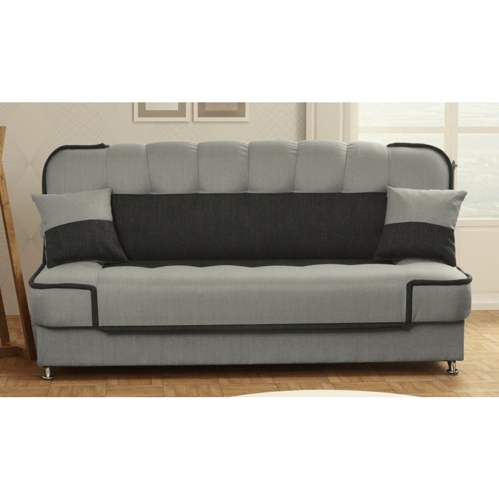 Rozkládací pohodlná pohovka s úložným prostorem ve světle šedé barvě KN330