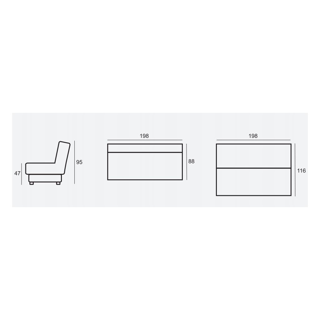 Jejím rozložením vznikne spací plocha o velikosti 198x116 cm.
