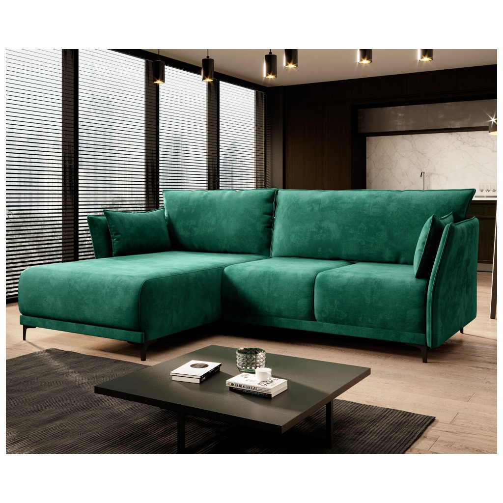 Rozkládací sedací souprava, smaragdová, levá, SALVO ROH