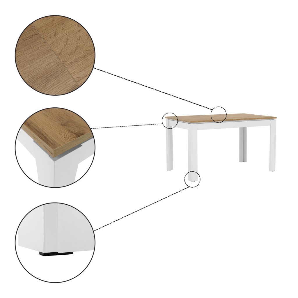 Rozkládací stůl, bílá/dub wotan 135-184x86 cm, VILGO