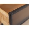 Její kouzlo nelze upřít, a to vše díky přirozené barvě zlatého dubu, která byla zdůrazněna při procesu olejování. Dřevěná TV skříňka zaujme přírodní kresbou dřeva - piercingové kroužky a uzly zdobí povrch nábytku. Dubová TV skříňka byla obohacena o pevnou, kovovou základnu s nožičkami v barvě černé anody, která koresponduje s kovovým jednoduchým madlem.