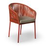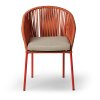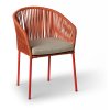 Sada 2 komfortních zahradních židlí s pevnou kovovou konstrukcí a látkovým výpletem v červené barvě. Kovové části byly ošetřeny proti rzi. Židle jsou dodávány včetně odnímatelného podsedáku. Jejich nosnost židlí činí až 110 kg.