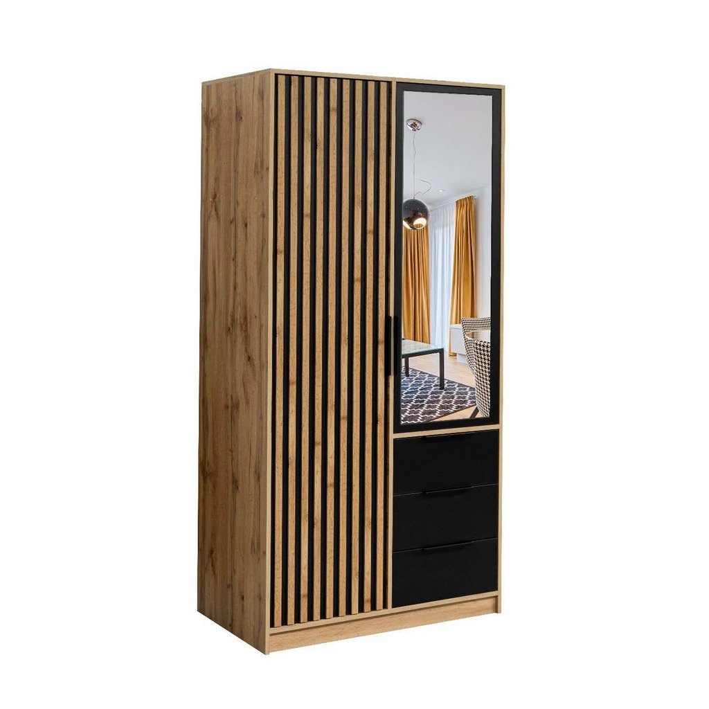 Šatní skříň BASILIO LUX 100 dub wotan/černá/zrcadlo